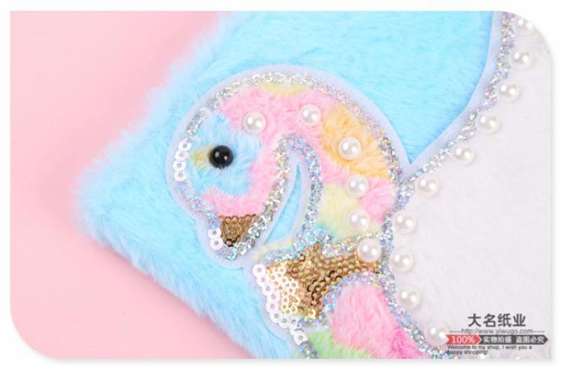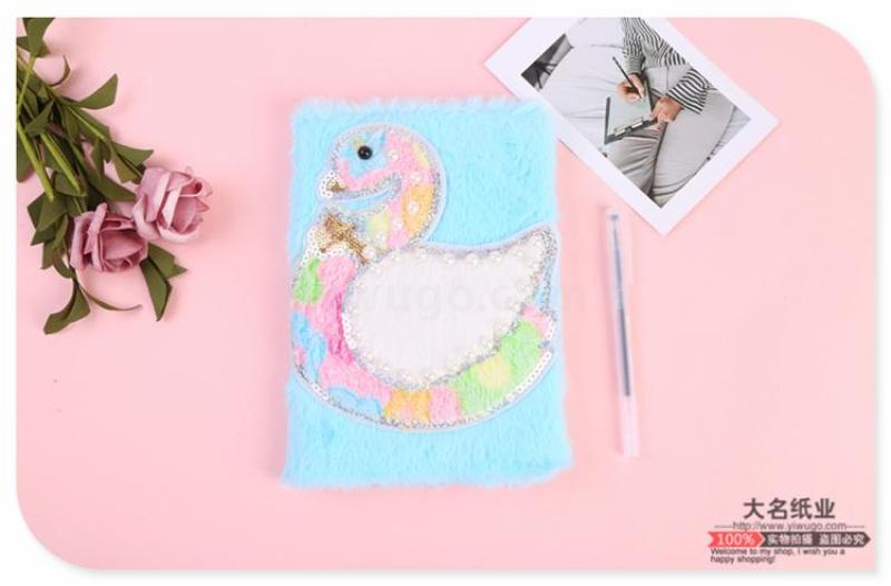 商品名称:仿珍珠装饰天鹅短毛绒新奇笔记本日记本 中小学生用软抄本手账本