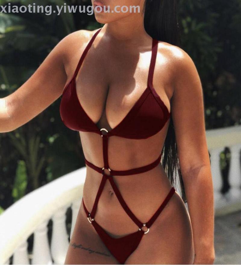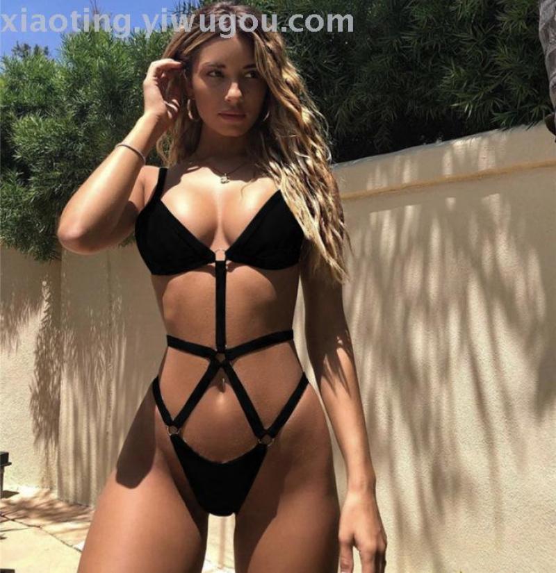 foreign trade new one-piece personalized swimsuit nylon fabric gathered show belly sexy triangle bikini factory direct sales