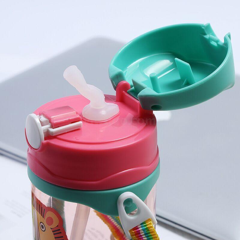 The new type of plastic suction cup is 400ml for children's strap rope and double handle straw cup