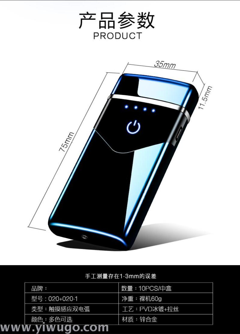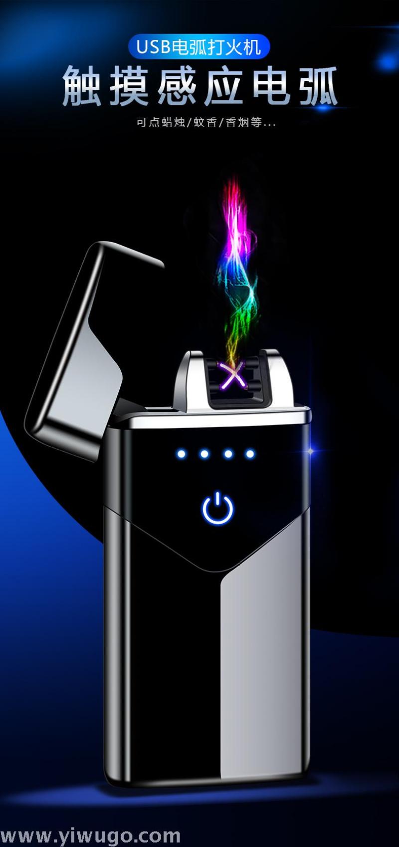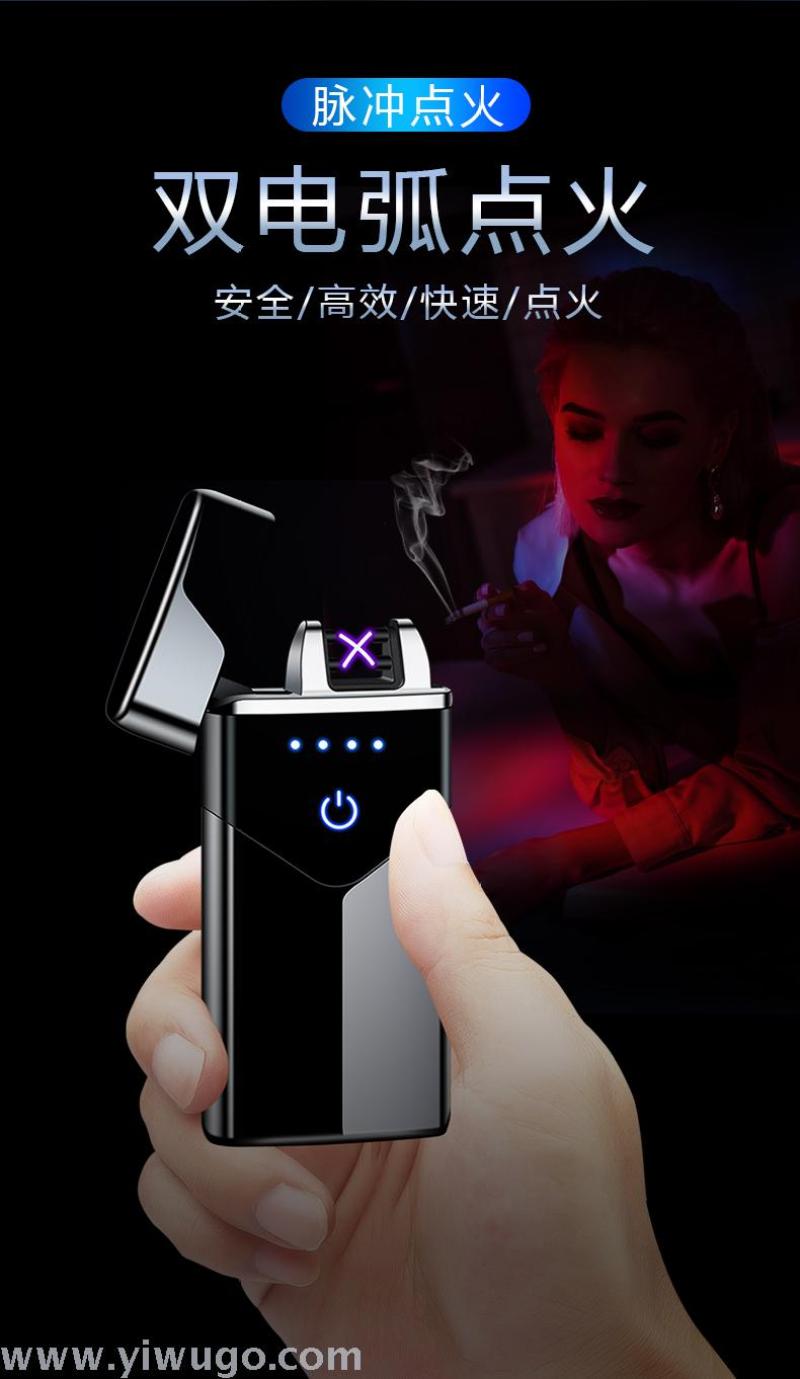 About Product:Charged Windproof Creative USB Electronic Cigarette lighter Touch Sensor Power Display Dual ARC lighter tide