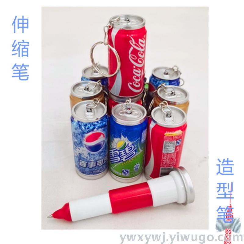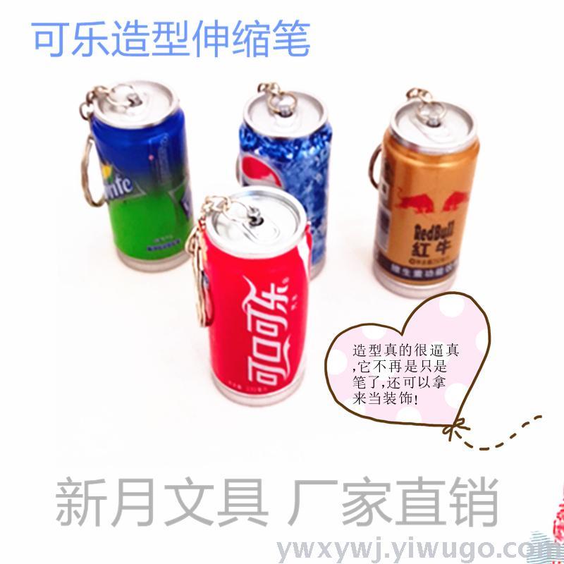 可乐饮料伸缩笔,带钥匙扣,可伸可缩,使用方便还很有创意,挂在钥匙上,包包上都很好,多种可乐罐款式可选择,仿真度还很高,携带方便。不怕小朋友扎到眼睛,公司当奖品发送也很不错哦!