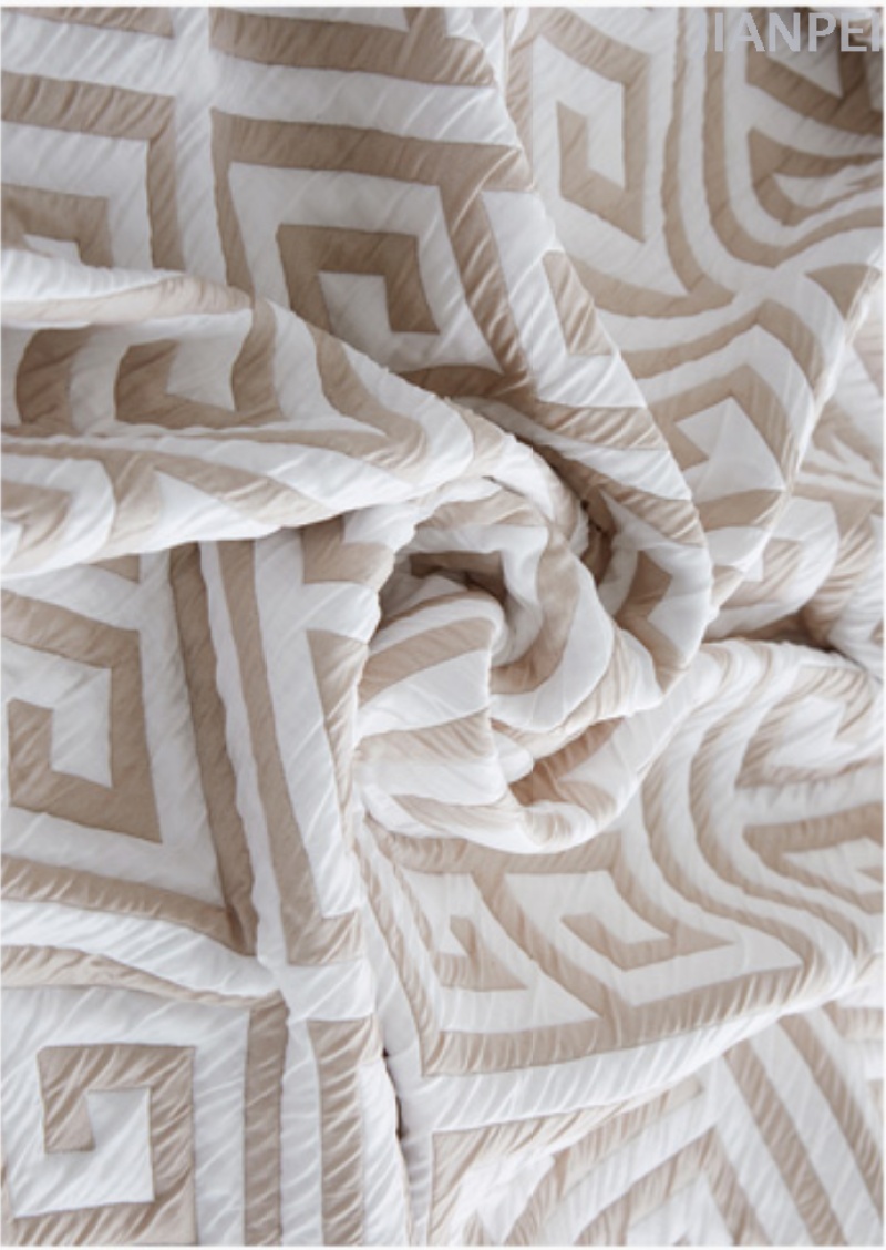 Zhejiang jianpei textile co., LTD., located in zhuji city, shaoxing city, is a textile industrial scale enterprise integrating product development, production and foreign trade. The company has the advanced Italian jacquard loom and the computer jacquard weave CAD system, selects the Japanese Korean import raw materials, the company's main products are jacquard window gauze (door width 2.6, 2.8 meters or 3 meters), embroidered window gauze, bedclothes pure silk polyester cotton fabrics. Our products have been exported to 30 countries and regions such as west Africa, north Africa, South America, Middle East, Europe and America etc