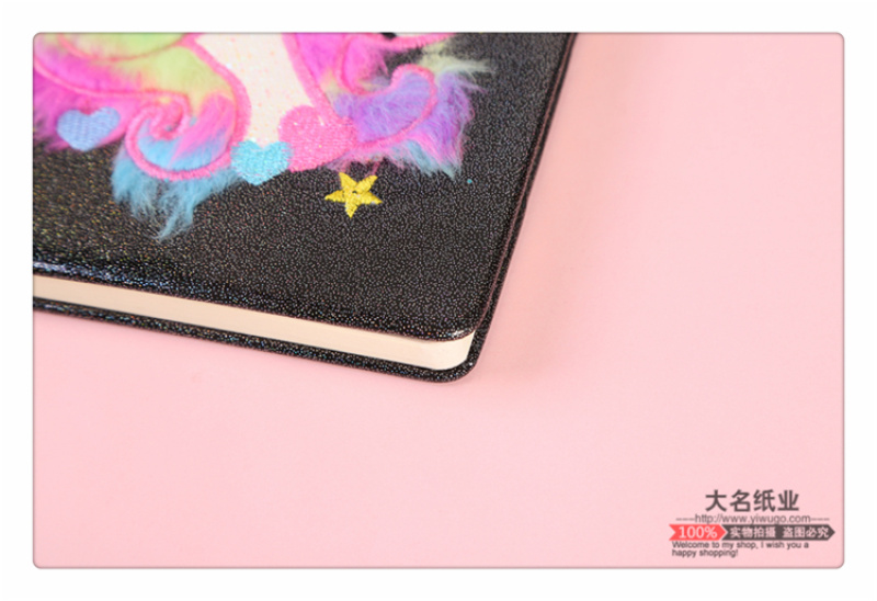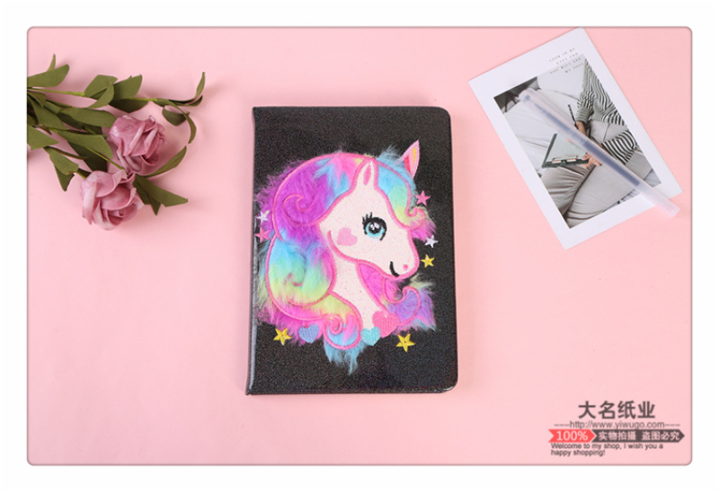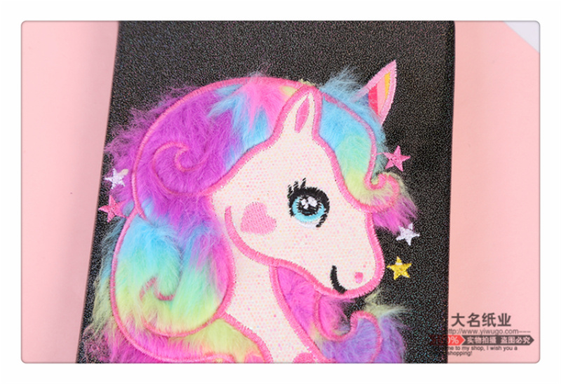 商品名称:黑色款亮片短毛绒天使马图案学生课堂笔记本 作业本 私密日记本