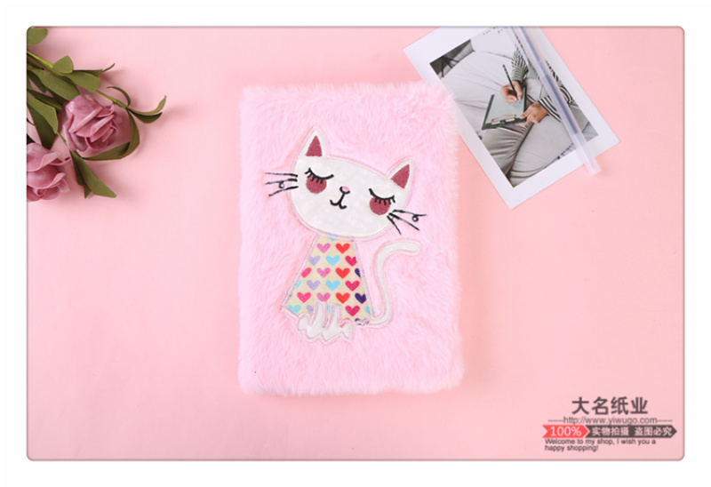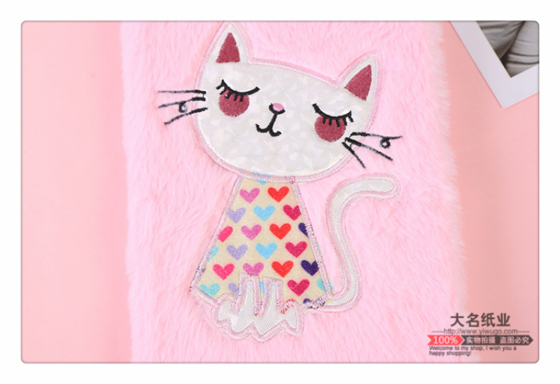 商品名称:粉色款可爱猫咪图案中小学生毛绒笔记本记事本女生可爱摘记手账本