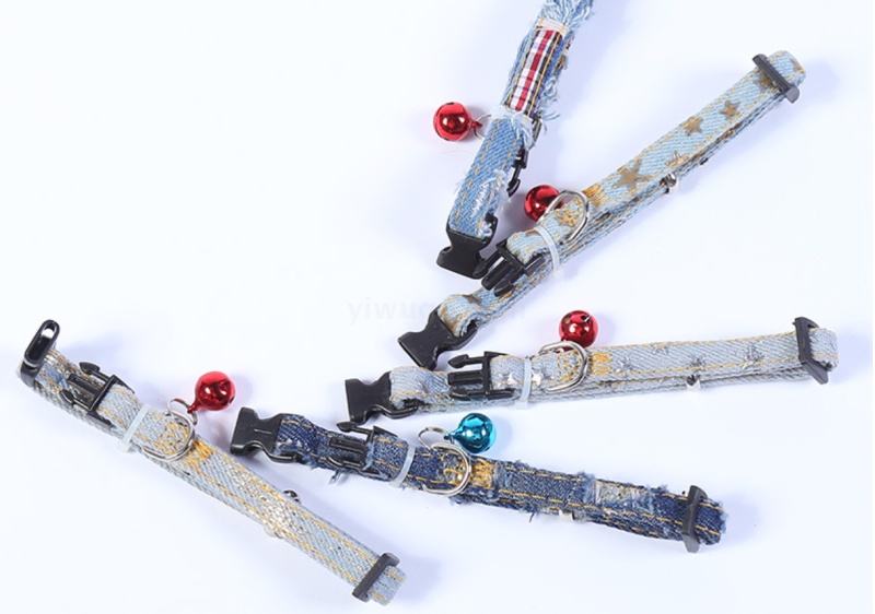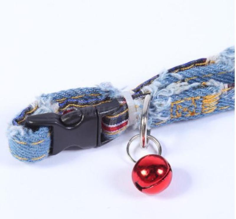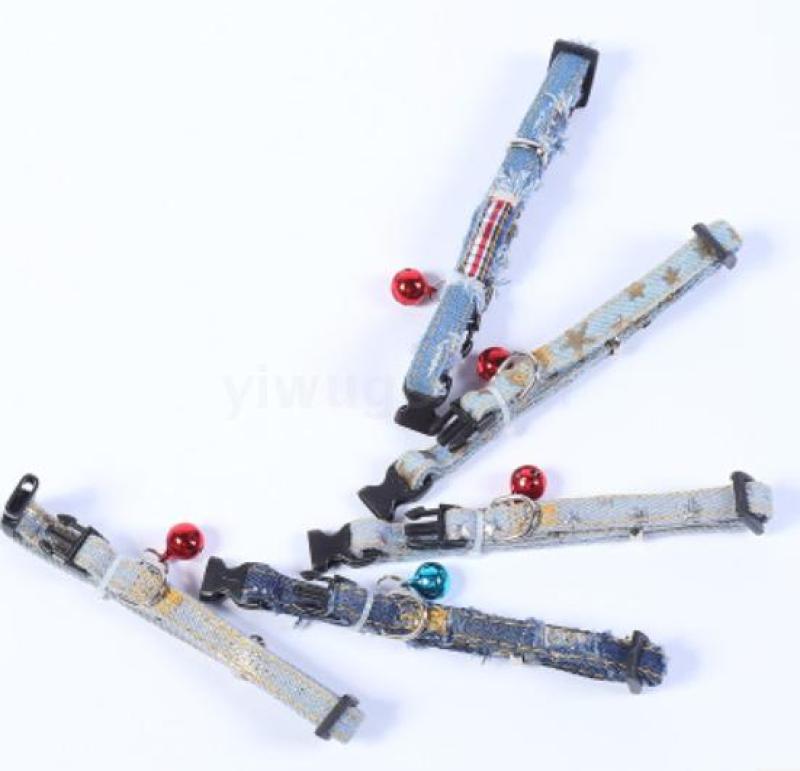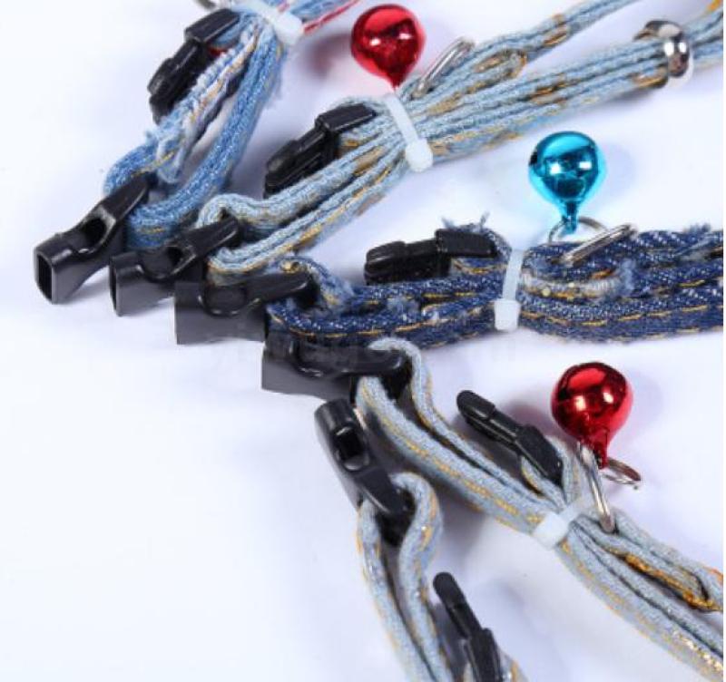 foreign trade wholesale pet dog collar durable bell hand holding rope double layer hole denim collar