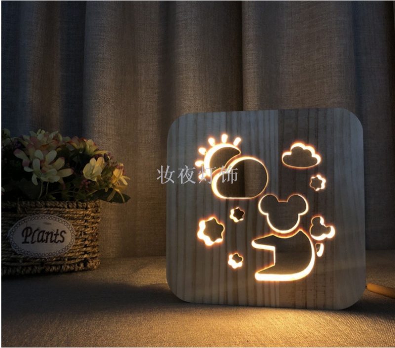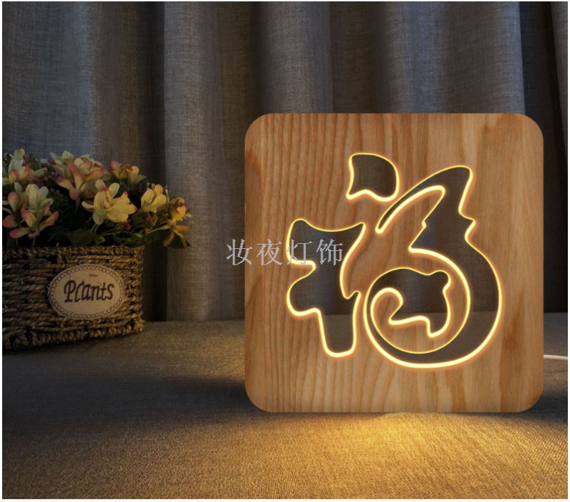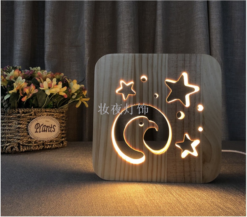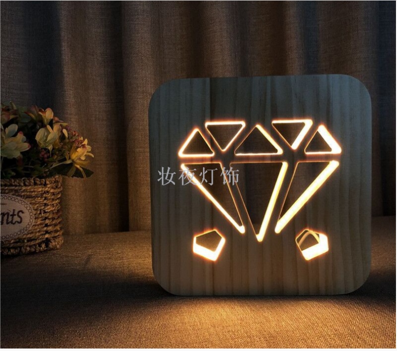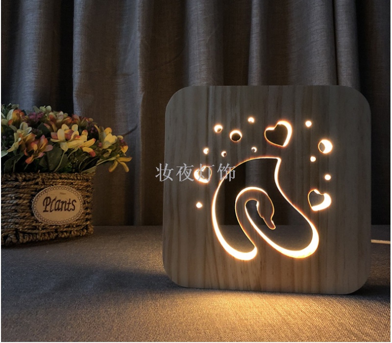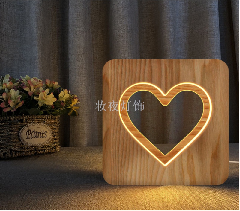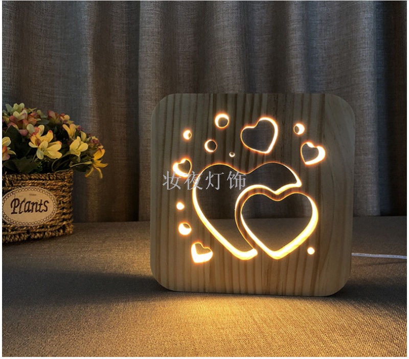 cross-border valentine's day two hearts small night lamp customized creative nordic wooden lamp