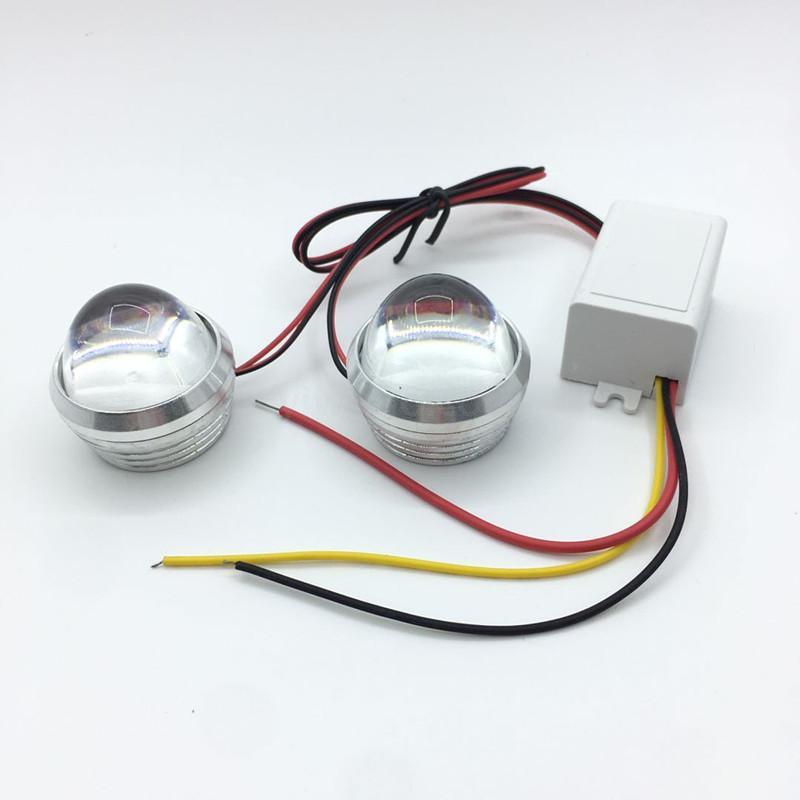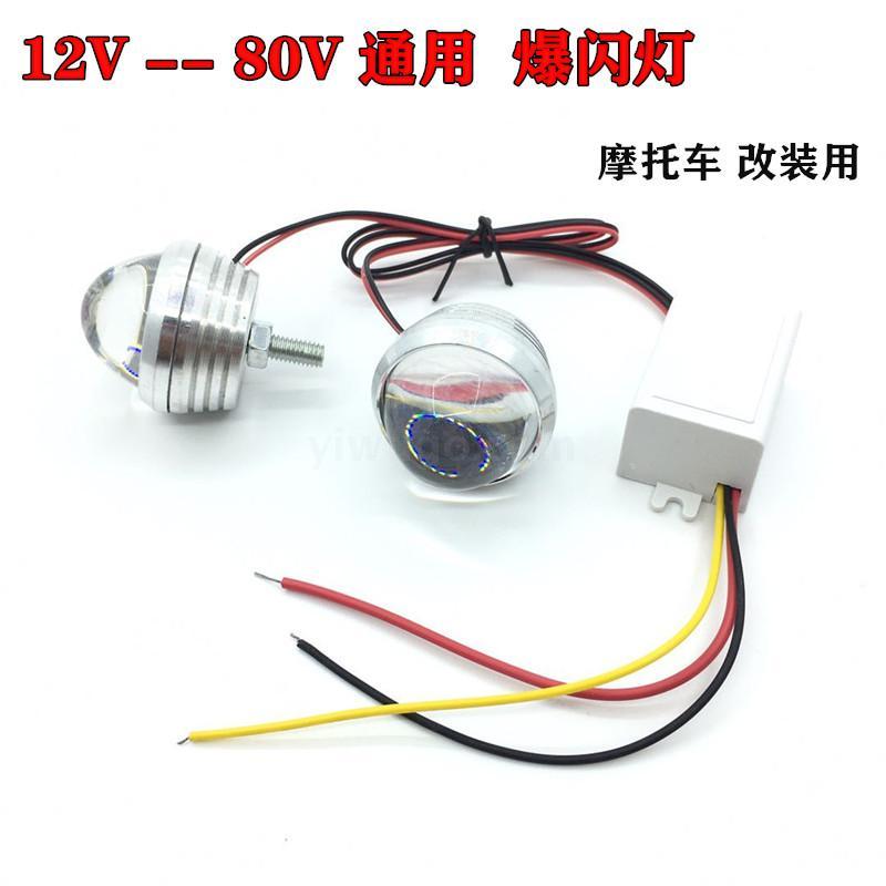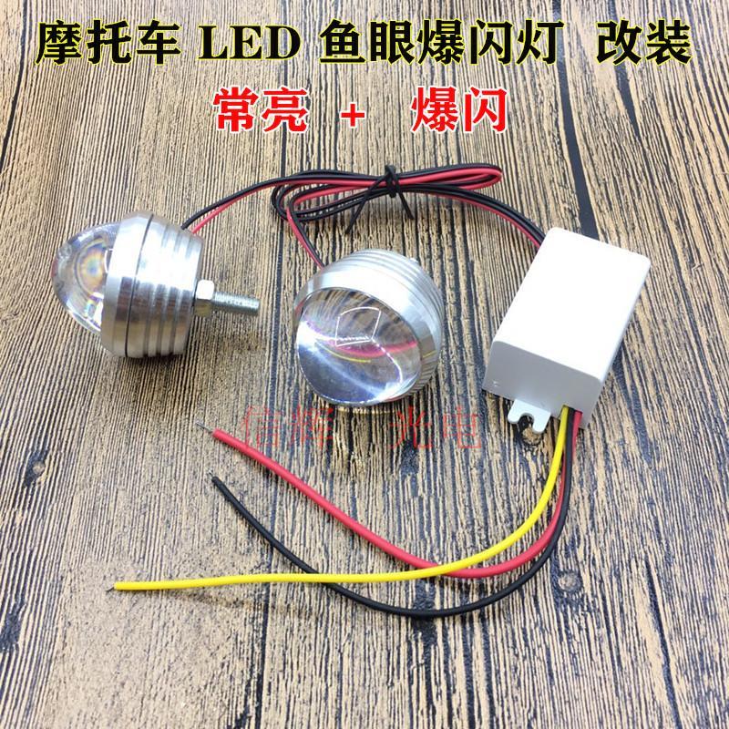 Motorcycle LED fish-eye light, 12v-80v universal wide pressure. Constant bright + flash red blue flash. Straight line constant bright brake burst function.