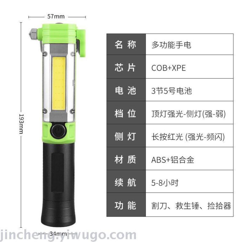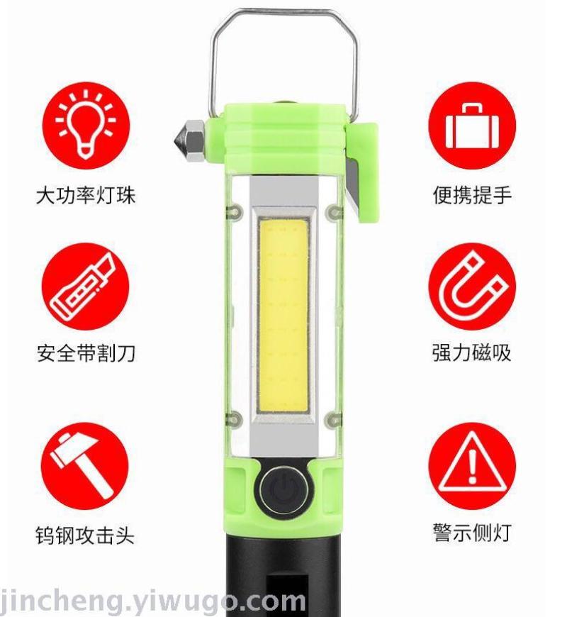 Cob Work Light Car Repair Led Safety Hammer with Magnet Repair Pickup Vehicle Emergency Light Strong Light Flashlight