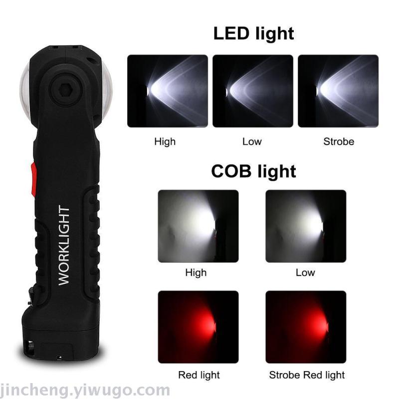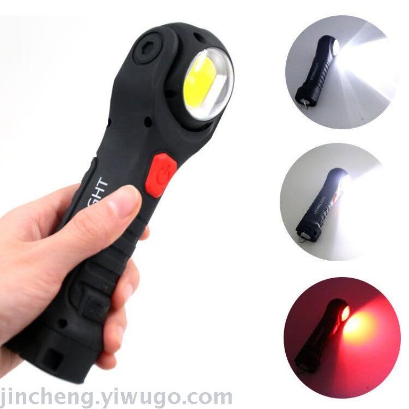 Cross-Border New LED Red and White Flashlight with Magnetic Moveable Work Light Led Inspection Lamp Rotatable Lamp Holder