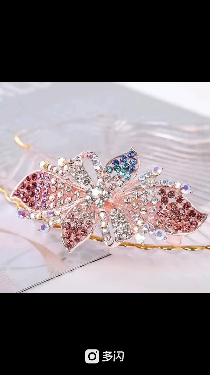 韩版顶夹弹簧夹镶钻盘发边夹花型水晶钻发夹马尾夹横夹头饰品
