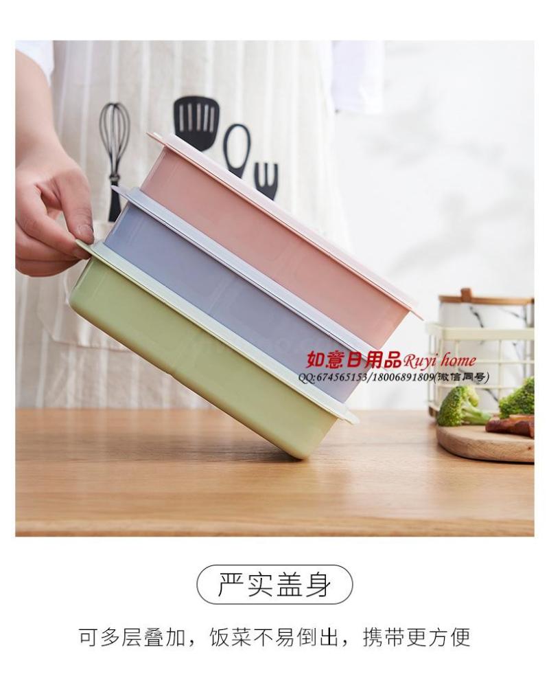 Student lunch box rectangular bento box plastic divider lunch box microwave oven heating lunch box portable lunch box
