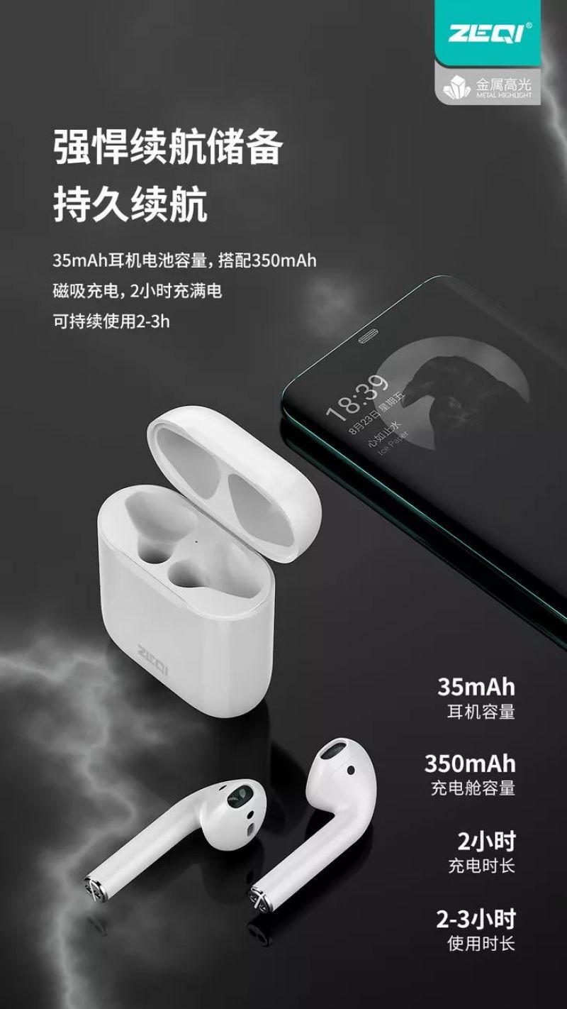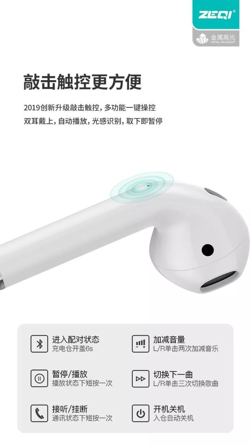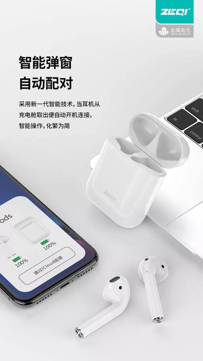 ZQ Brand Hot 1:1tws Wireless Bluetooth Headset Pop-up Window 5.0 Pairs of Ear in-Ear with Charging Case in Stock