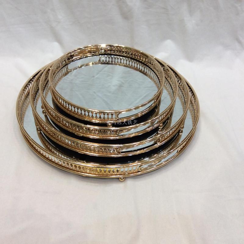 factory direct sales european mirror round storage tray wrought iron electroplating cake tray