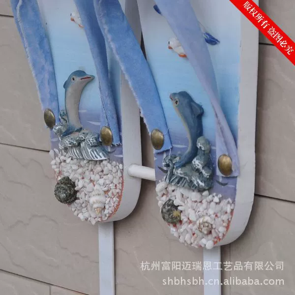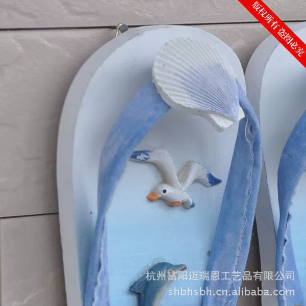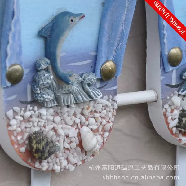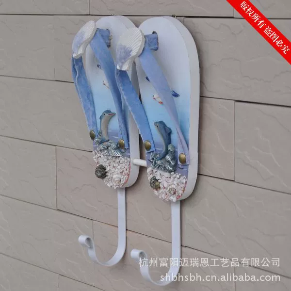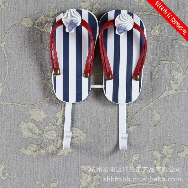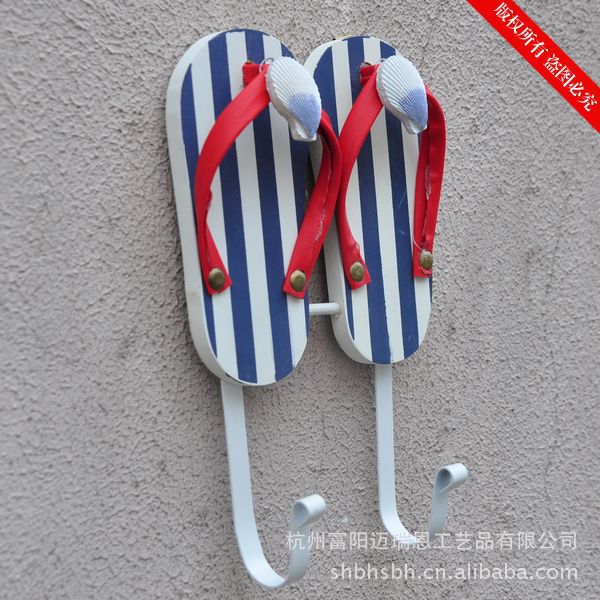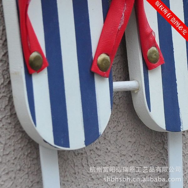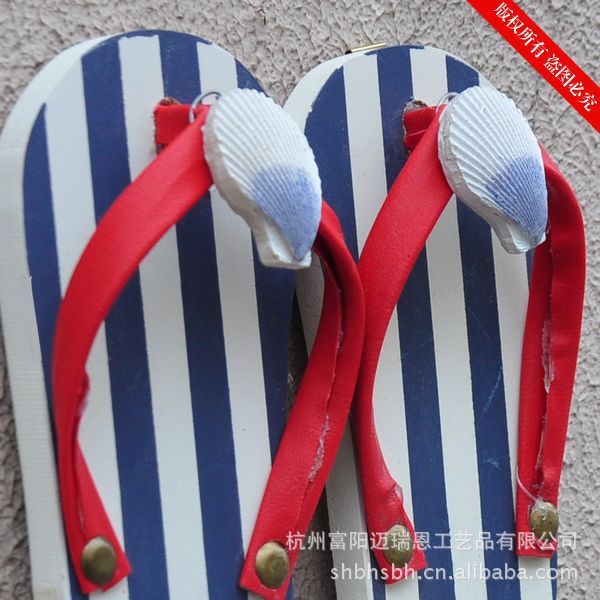 这是一款充满海洋味道的实用装饰品。色彩具有强烈的地中海风格,造型非常可爱,是一双别致的夹脚沙滩鞋,个性十足的仿真效果的条纹拖鞋,很特别!可以挂在门背后装饰挂衣物,也可以挂在浴室做毛巾挂,非常实用!