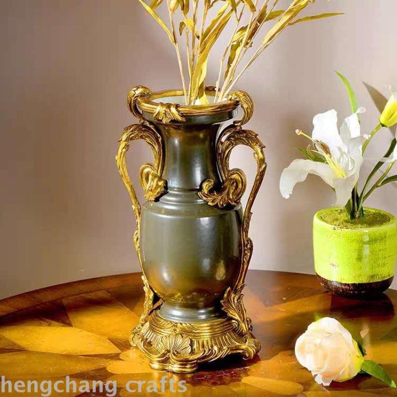 American style retro and nostalgic porcelain and copper decorative flower vase with two ears