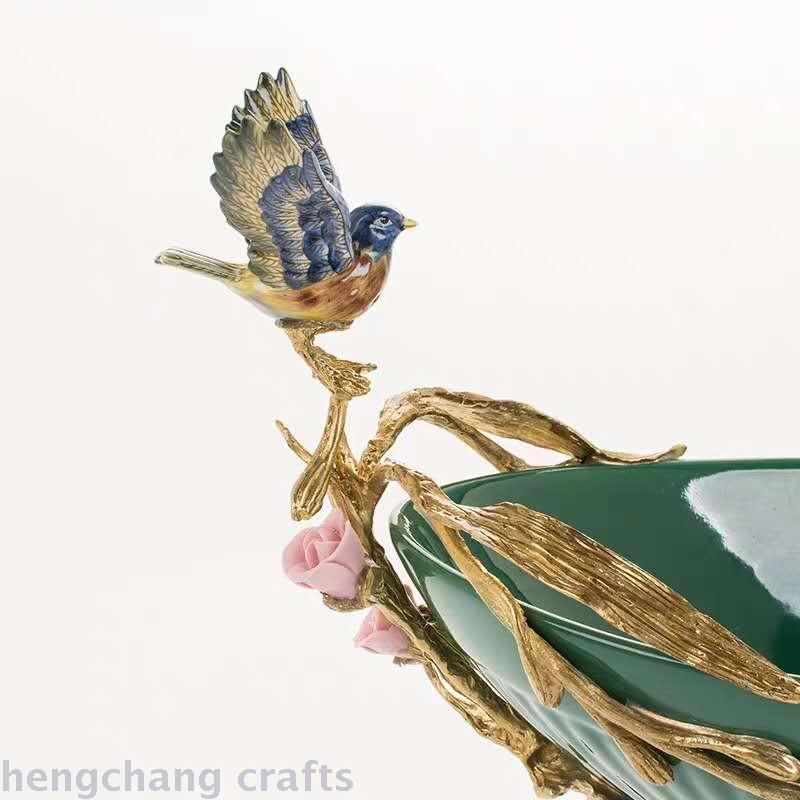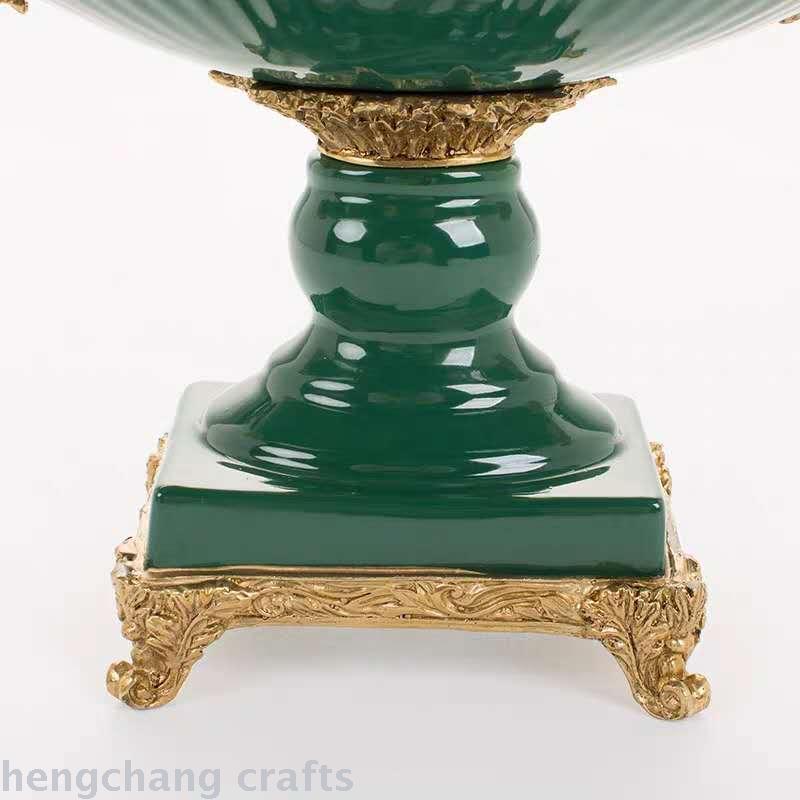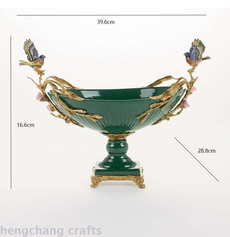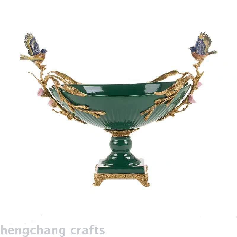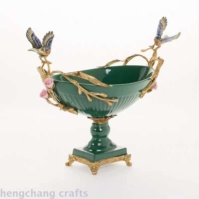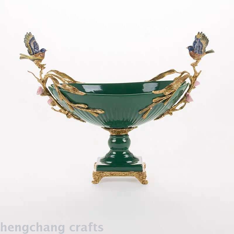 European-Style Green Ceramic Vintage Villa with Copper Soft Decoration Ornaments American Style High-End Luxury Fruit Plate Decorations