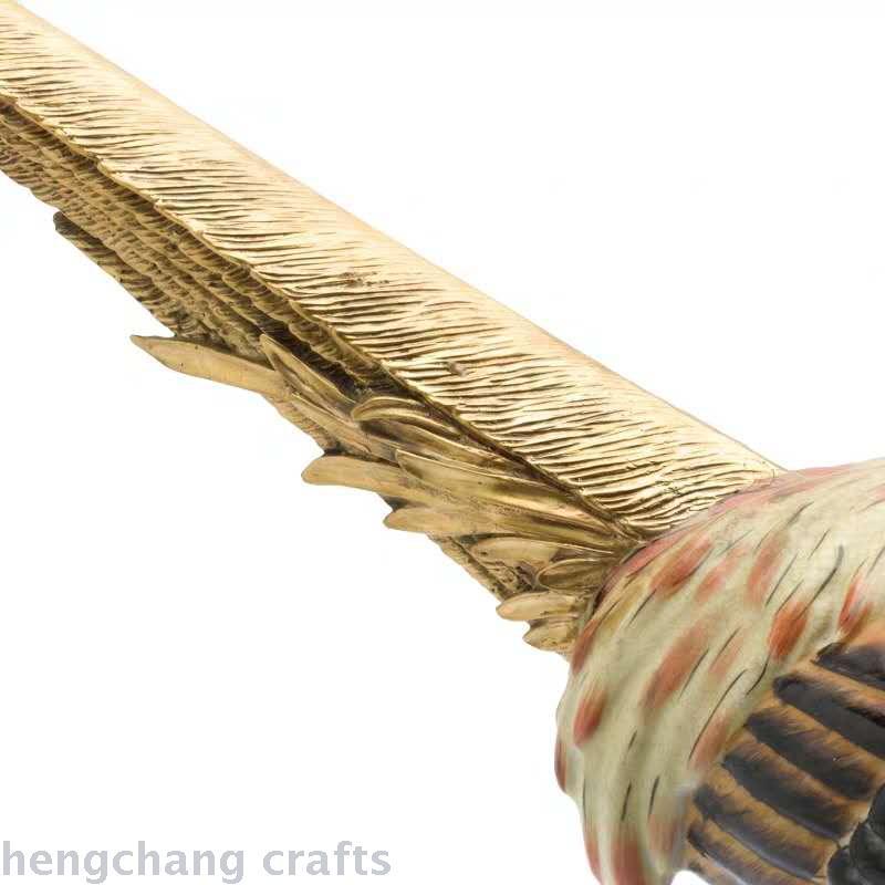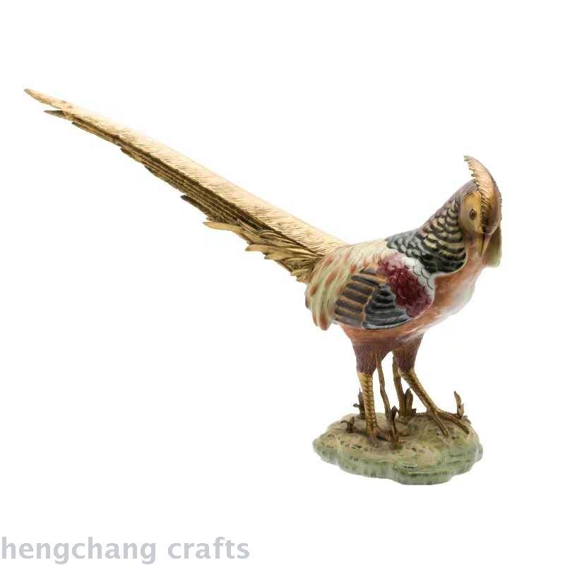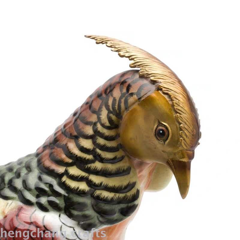 Luxury Home Decoration Living Room Decoration Animal Copper with Porcelain Hand Painted Golden Pheasant Furnishings