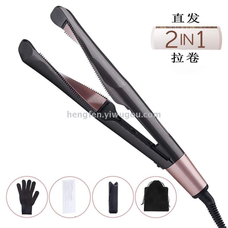 Coil straight two-in-one splint electric straightener LCD curler warps ceramic straight comb