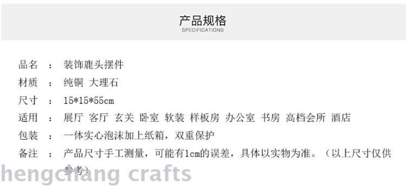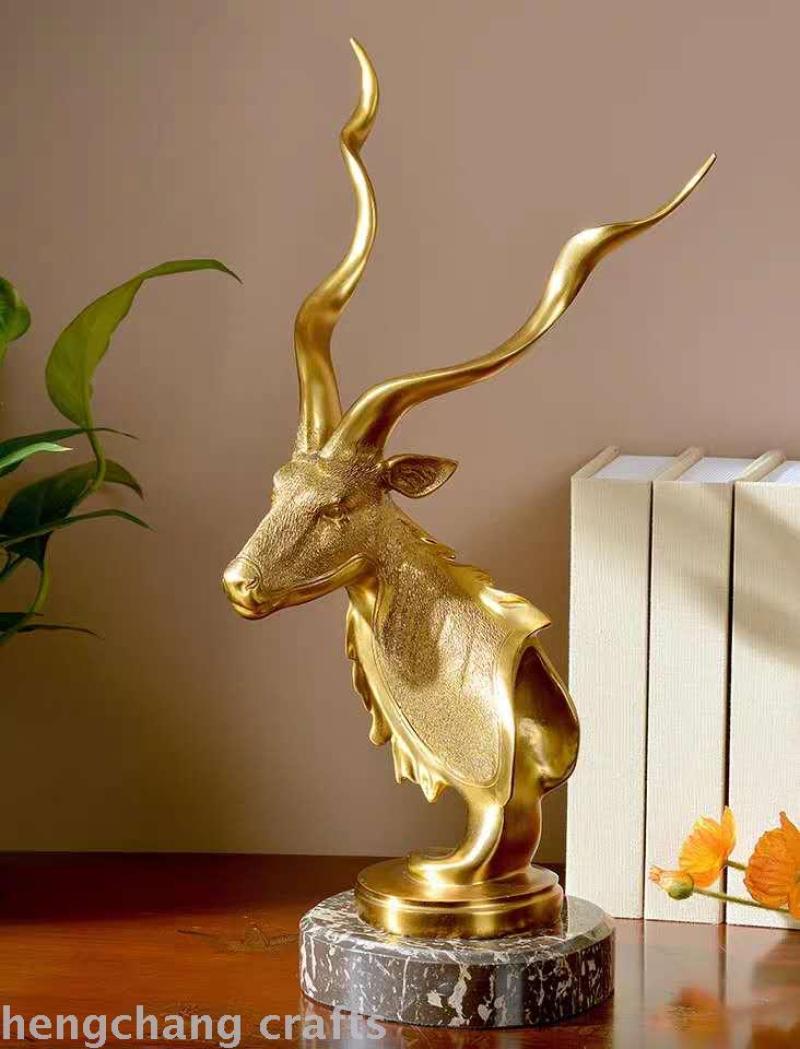 European-Style American Style Furnishings Jewelry Pure Copper Crafts Furnishings Model Room Soft Decoration Design Deer Head Decorations Ornament Ornaments