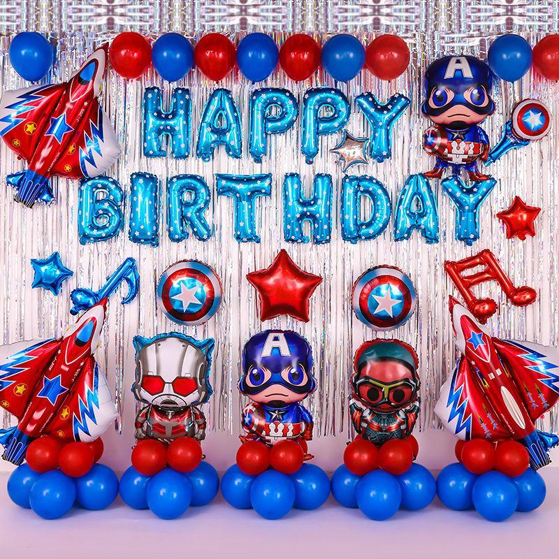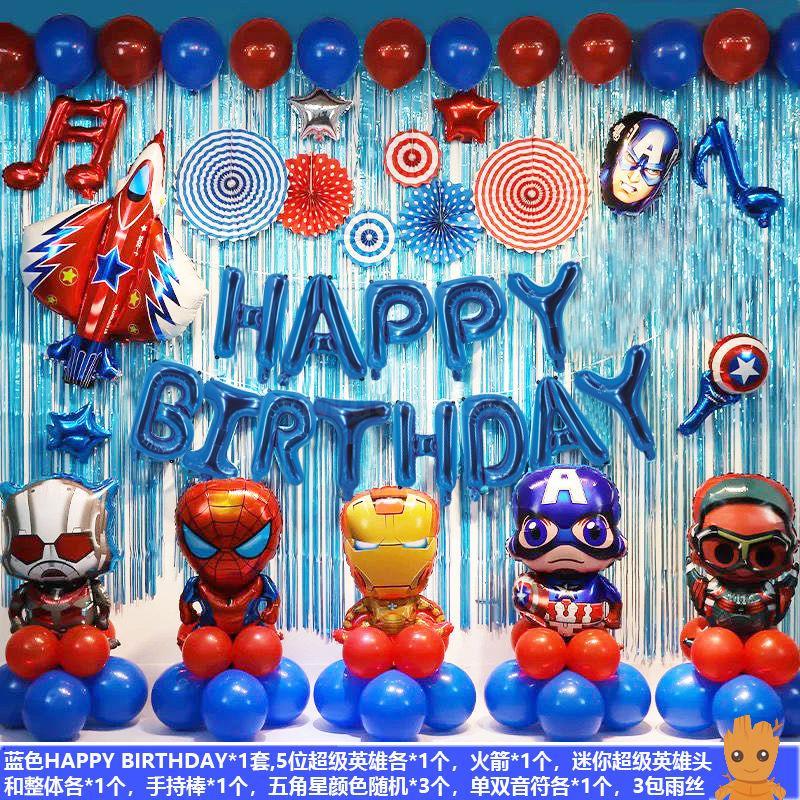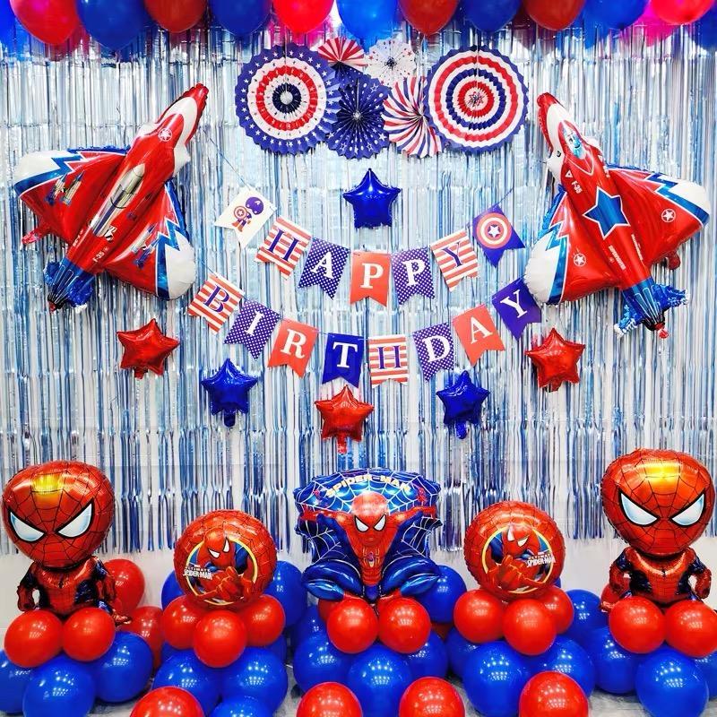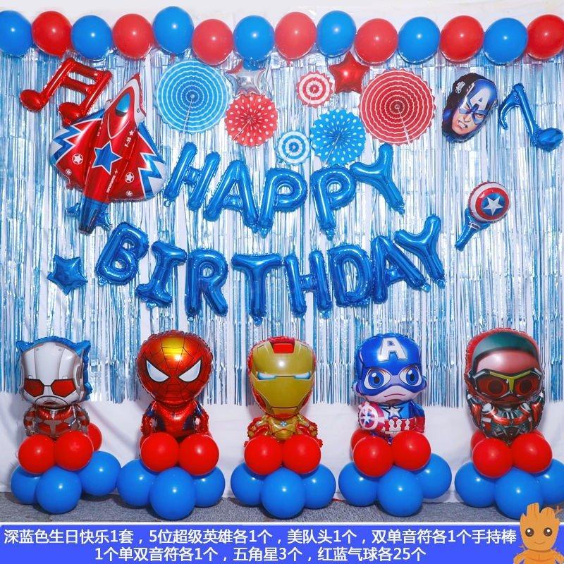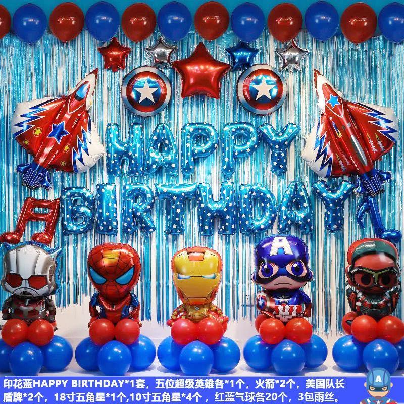 Creative Avengers celebrating children's birthday party decorated package with background aluminum balloons