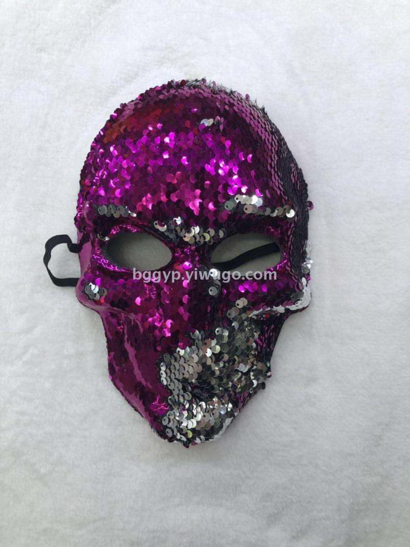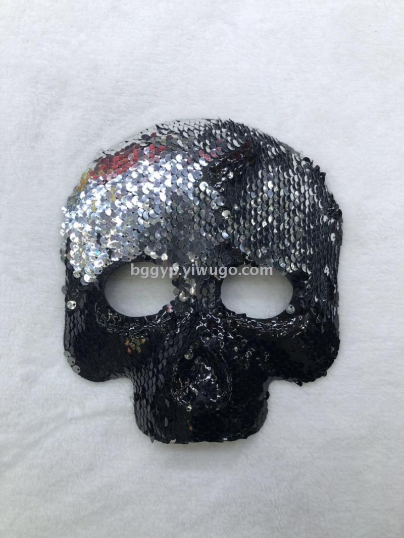 Sequined Turning Piece Skull Ghost Two-Tone Mask Halloween Ghost Festival Horror Mask