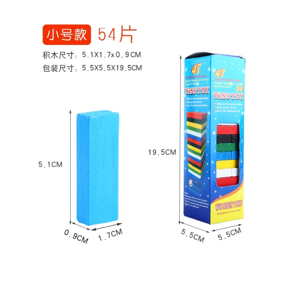 54 colorful, bricks pro jenga dominoes building blocks game educational toys