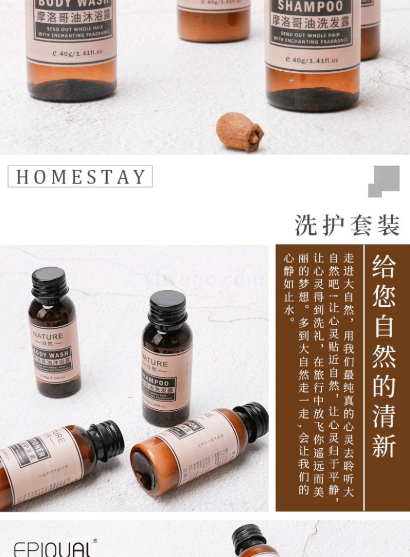 About Product:Hotel Homestay Hotel disposable Morocco shampoo bath liquid bottle 40ml guest room wash suit