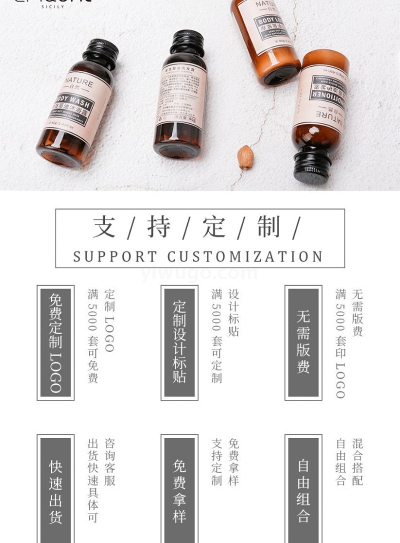 Hotel Homestay Hotel disposable Morocco shampoo bath liquid bottle 40ml guest room wash suit