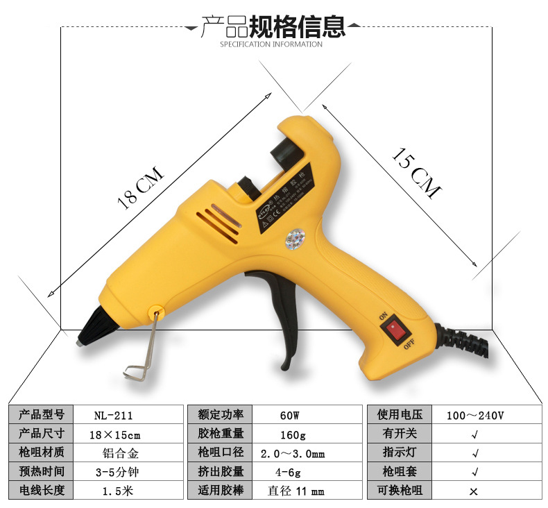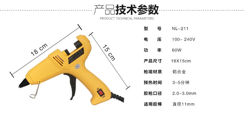 Naileao Hot Melt Glue Gun NL-211 Mini Gun Body Use 11mm Large Glue Stick Glue Gun 40/60W Optional