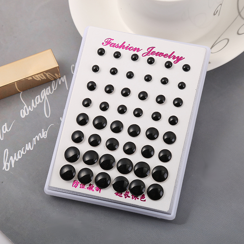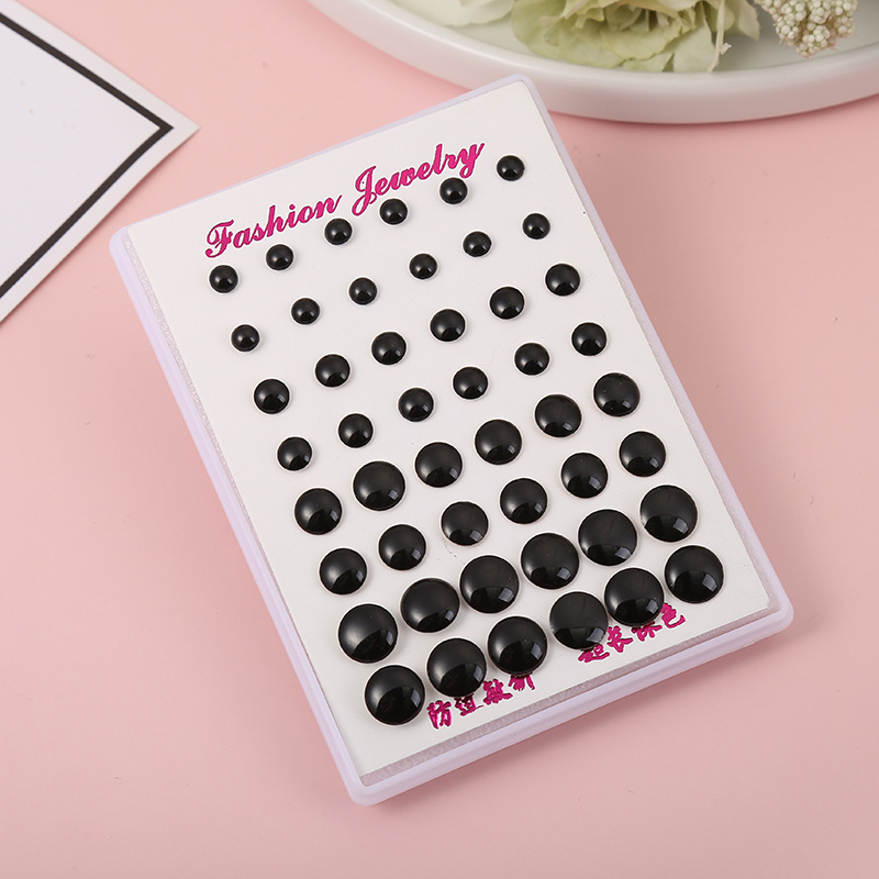 cross-border new arrival colorful wafer drop oil black studs fashion popular stud earrings colorful oil necklace vintage 24 pairs box