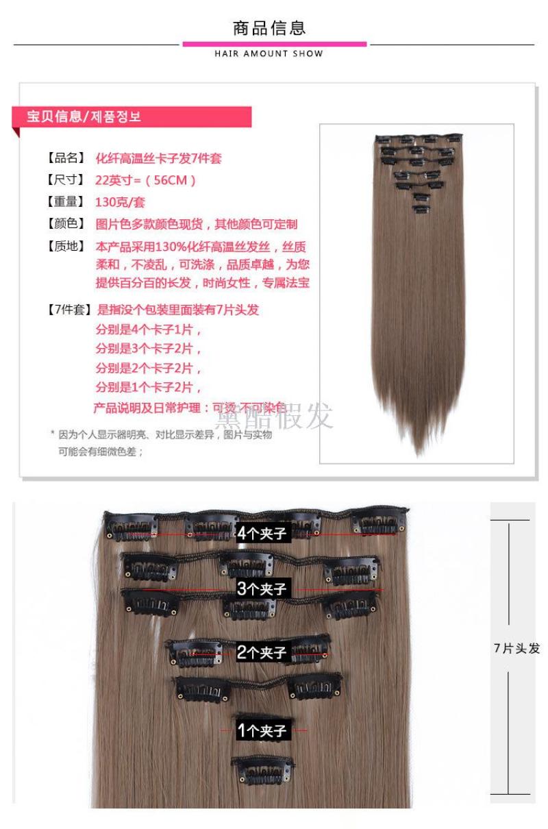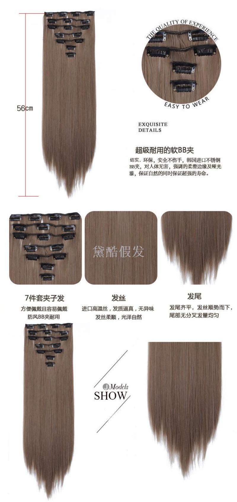 European and American Chemical Fiber Hairpiece Clip Female Hair Extension 7-Piece Set 16 Card Straight Hair wig Curtain Wholesale Clip in Hair