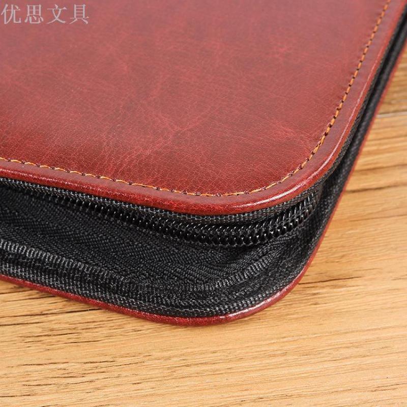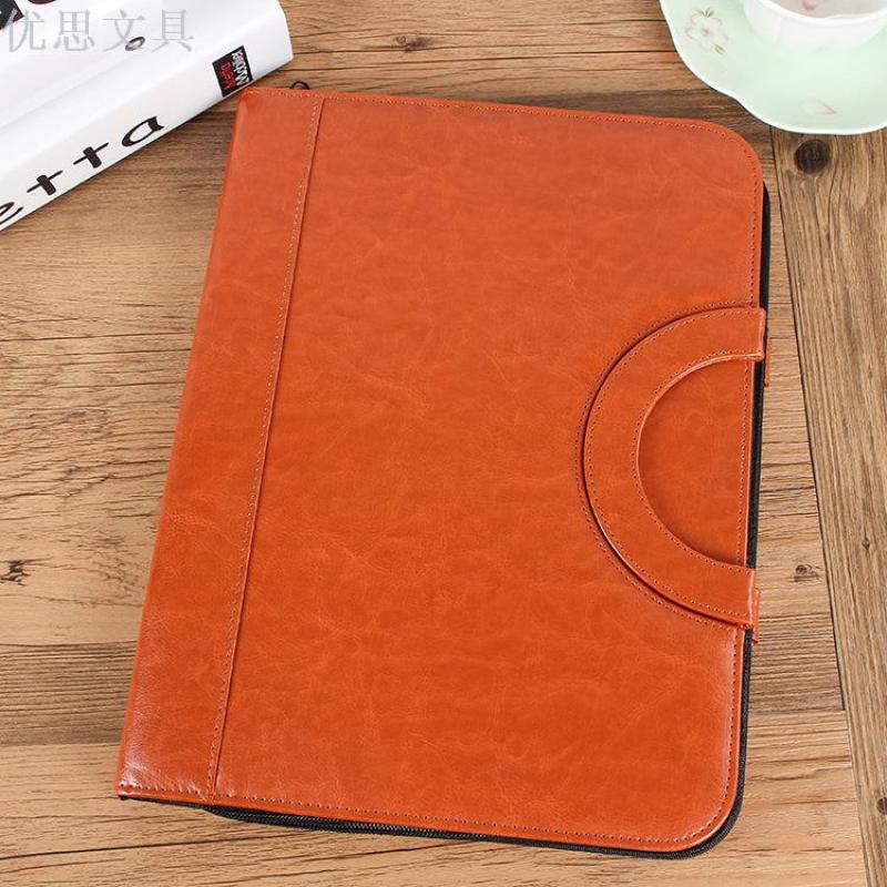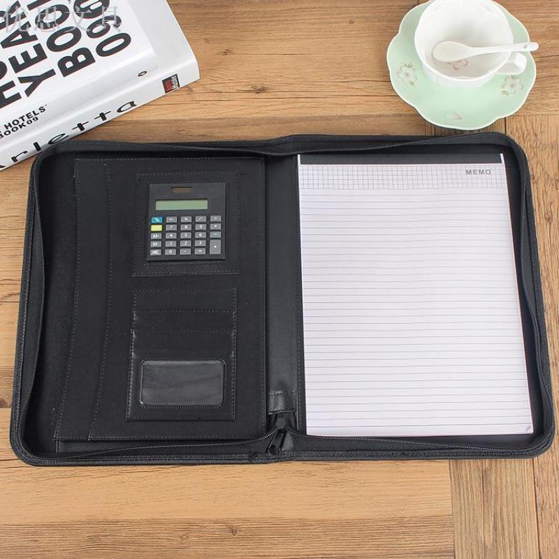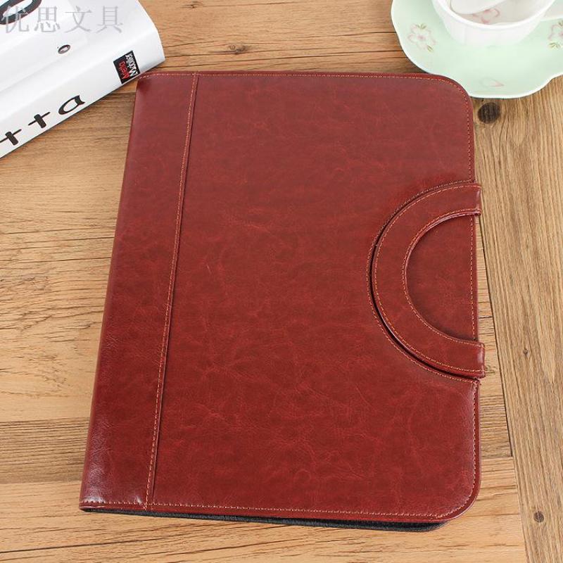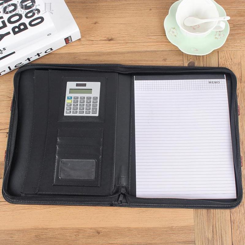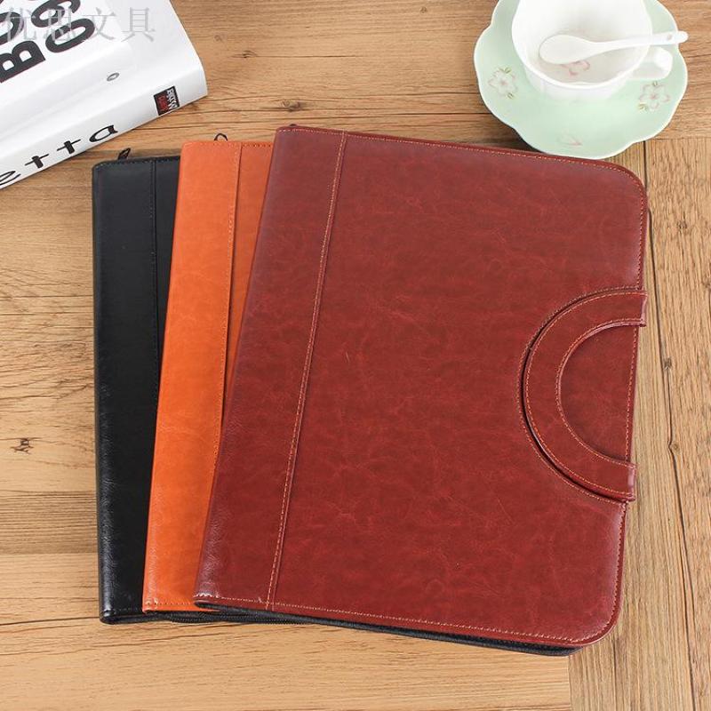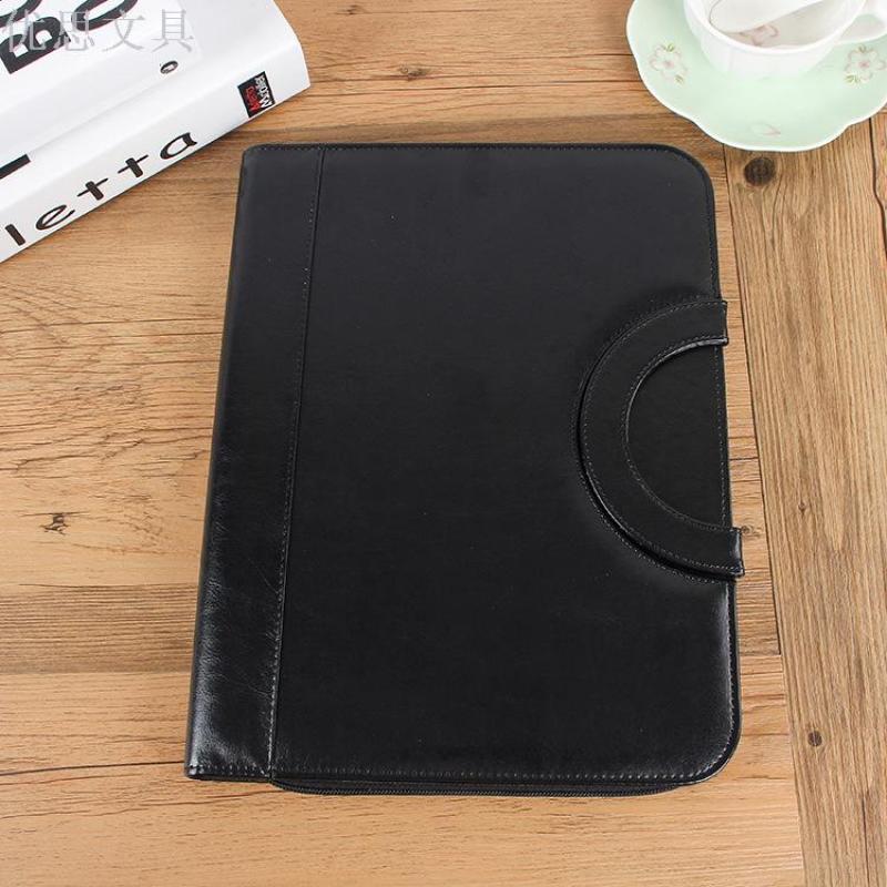 A4 Multi-function Folder Leather Business Manager Clip Zipper Bag Custom Manufacturers Direct Wholesale Spot
