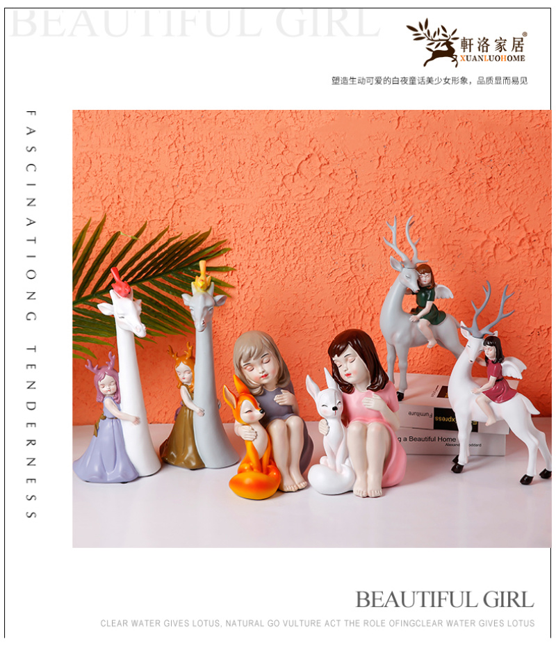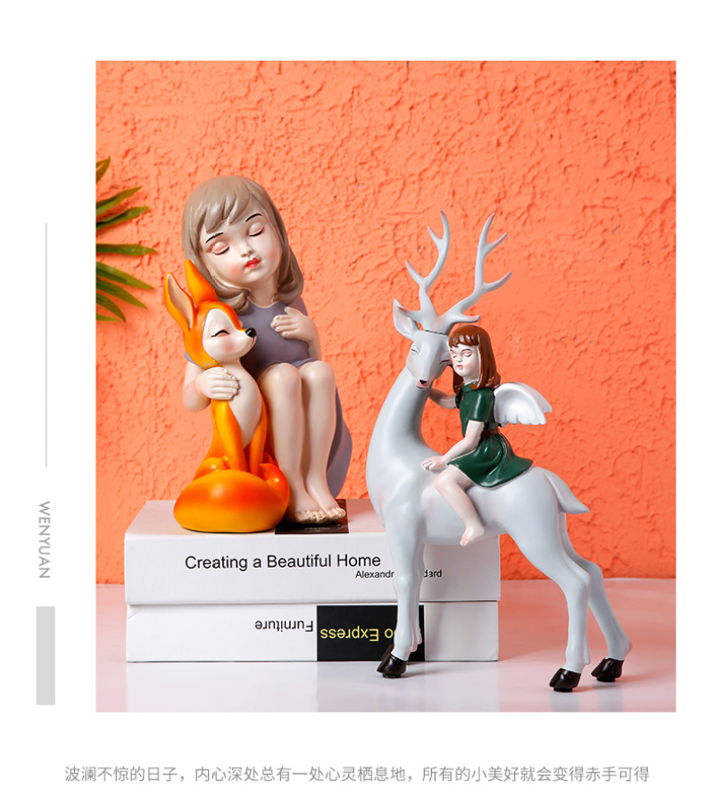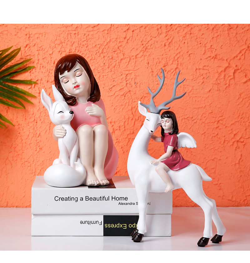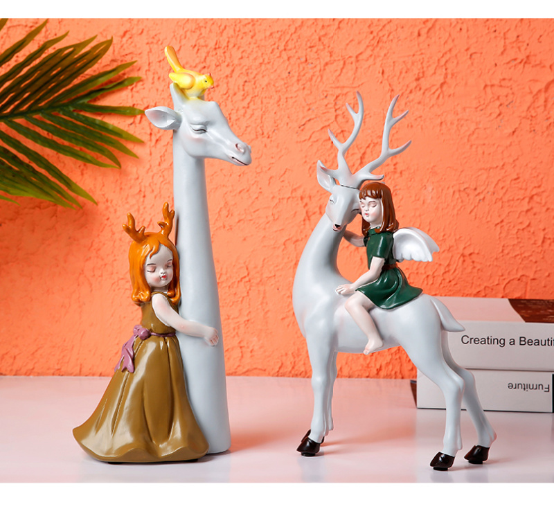 fairy tale world holding deer youth beautiful girl children's room home decorations and accessories ornament decoration