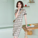 Women's dress summer cotton checked Cheongsam short-sleeved retro slim mid-length girls cheongsam improved dress