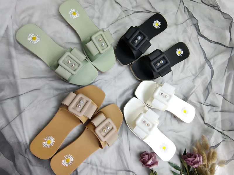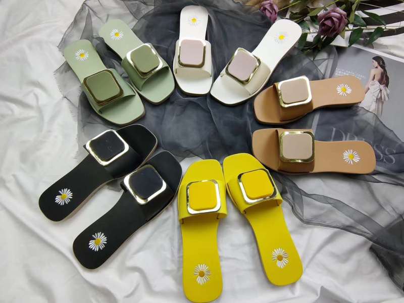 summer new daisy ring buckle women's slippers