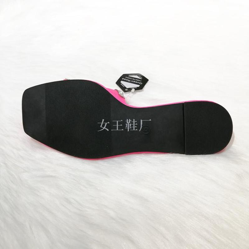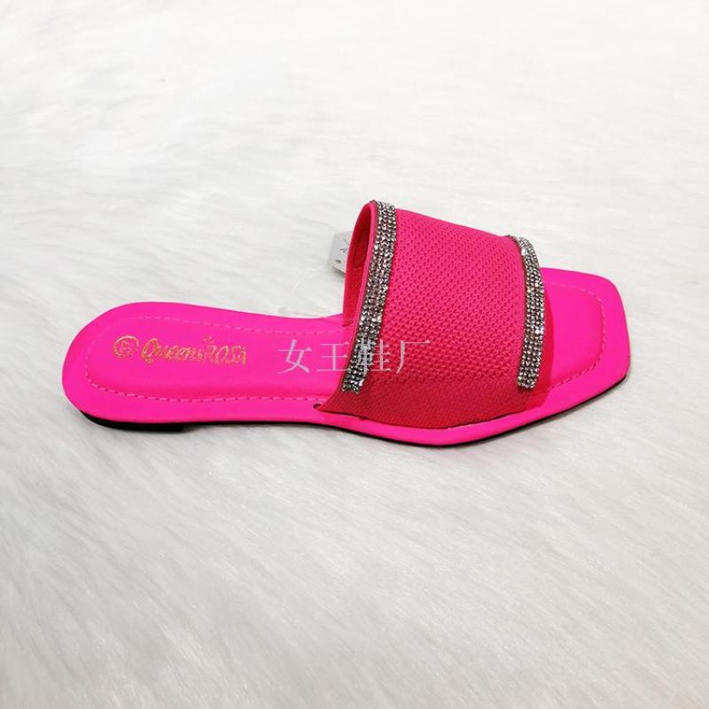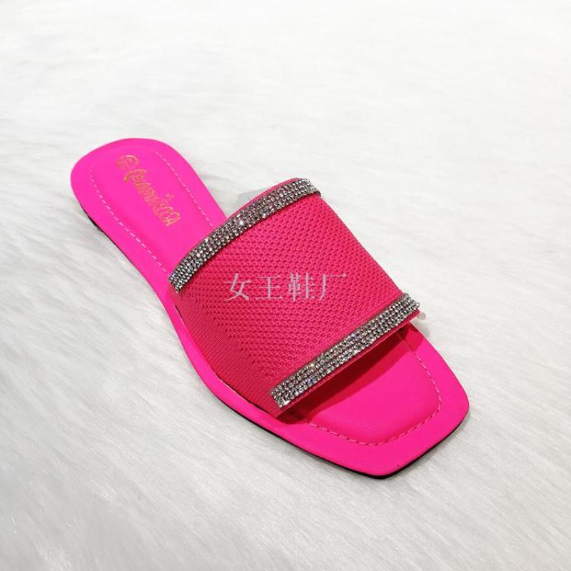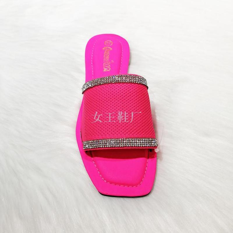 shoes summer fashion new square toe women's shoes rhinestone candy color women's flat sandals slipper