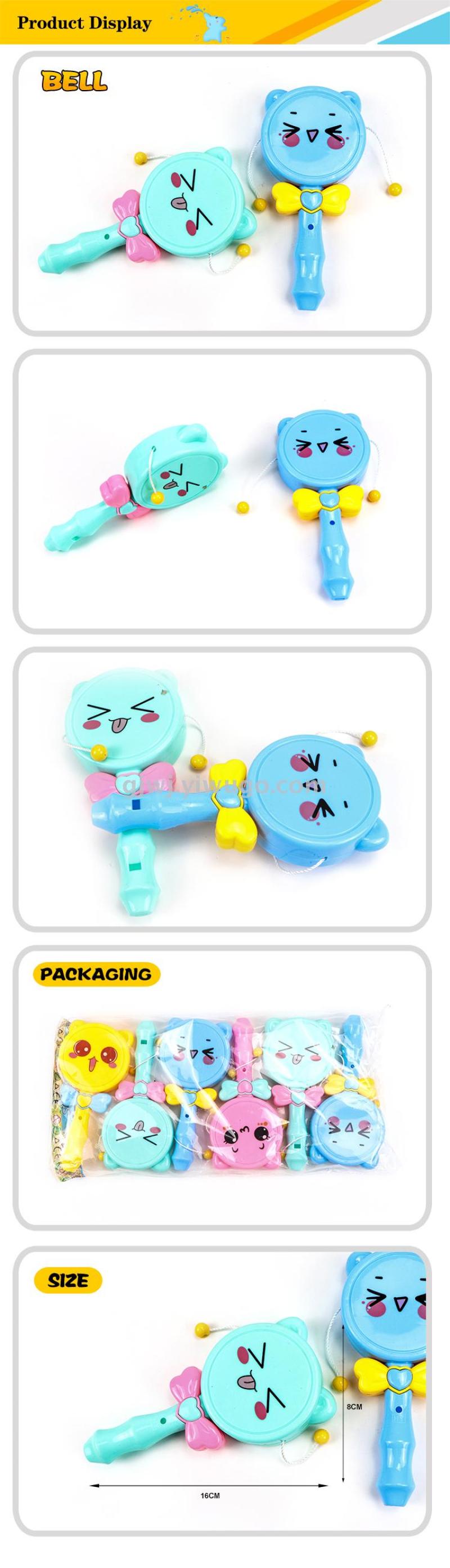 108-06 children's toy cartoon expression rattle with tail whistle 6 pieces a pack of mixed color packaging