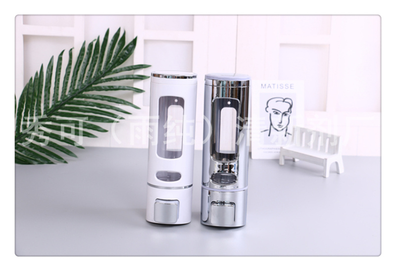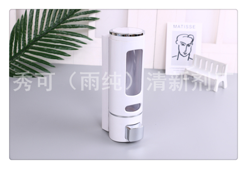 产品名称:圆柱体形按压洗发洗手瓶子 挂墙沐浴盒挂壁皂液机 手按浴室分装瓶