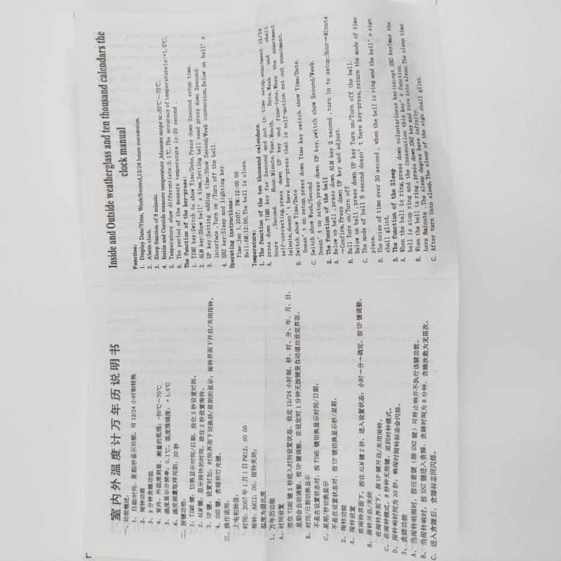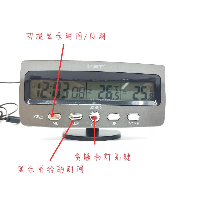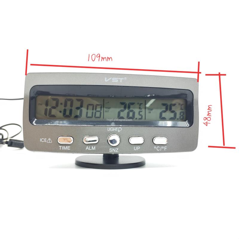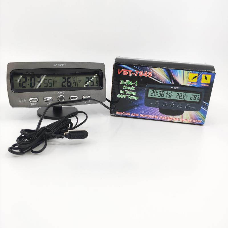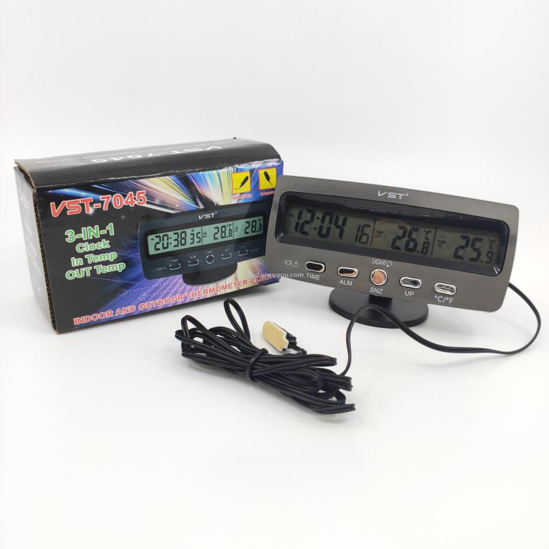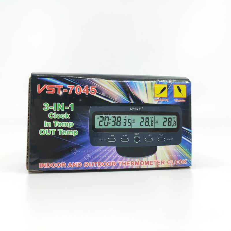 About Product:VST-7045 multifunctional indoor and outdoor digital display thermometer perpetual calendar clock alarm clock, material PS, type digital voltage thermometer, degree Celsius conversion, color box packaging, 200 pieces per piece, box gauge: 53*36 * 53cm, gross weight 26.7KG