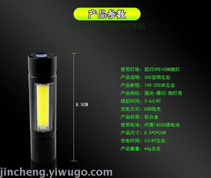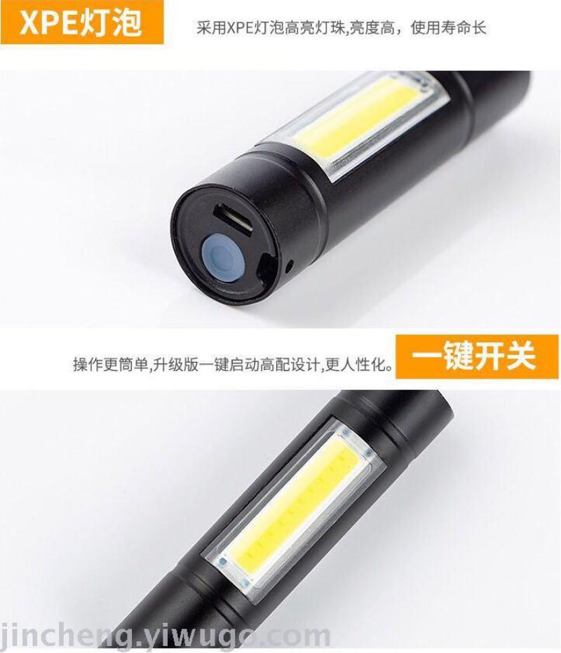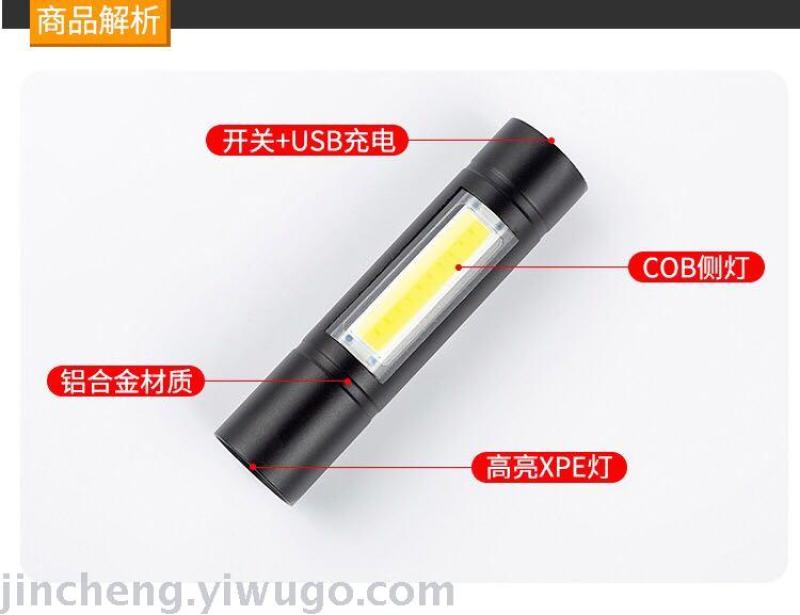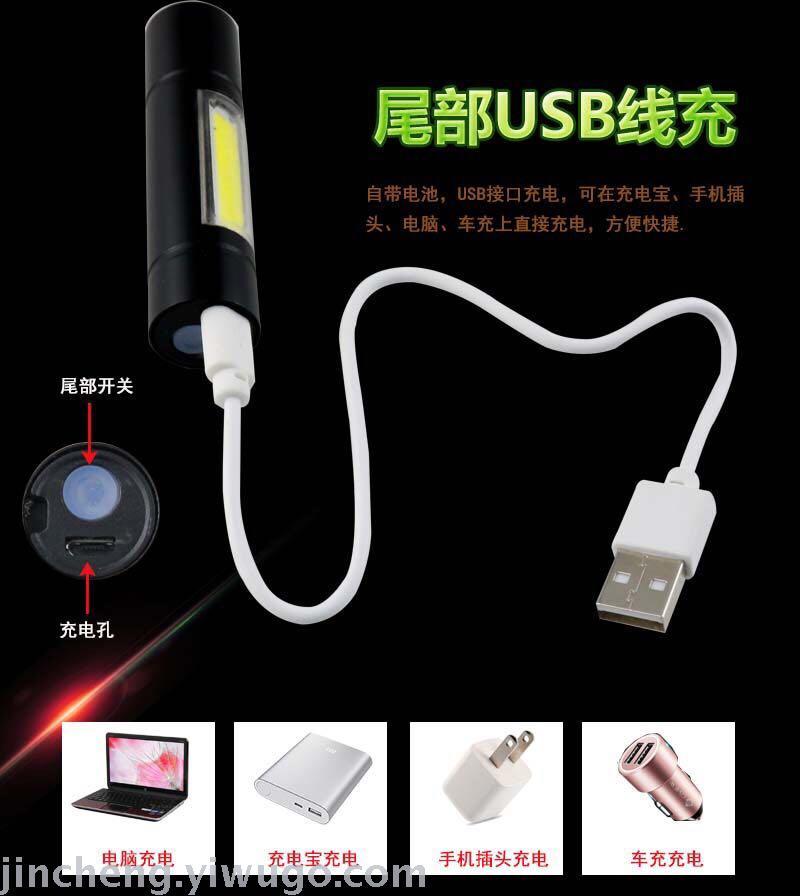 New Mini Boxed Led Power Torch USB Outdoor Charging Multifunctional Zoom Side Light