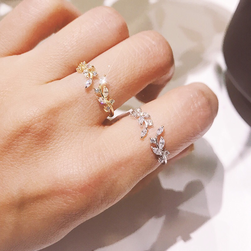 korean fashion trendy leaves cold style open girl series ring platinum ring electroplated color retaining