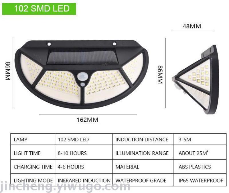 102 Solar Body Induction Courtyard Wall Lamp Cross-Border Hot 122cob Four-Side Luminous Solar Wall Lamp