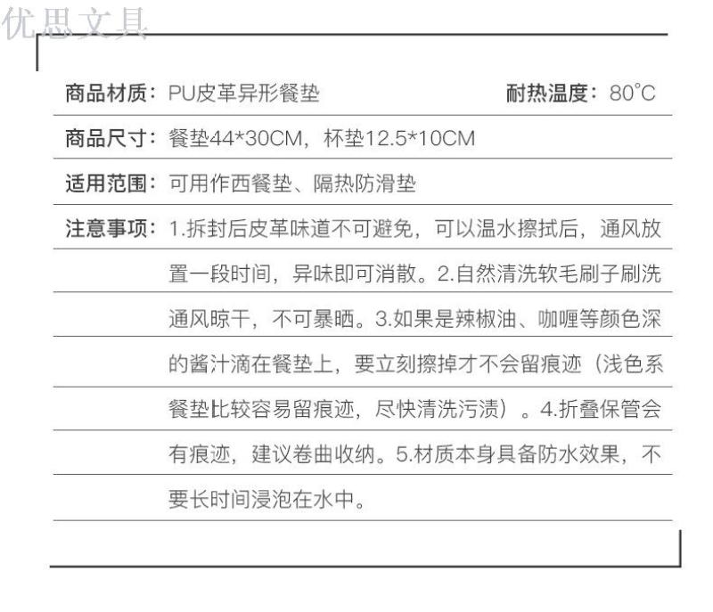 Nordic style household leather Mat hotel restaurant western-style mat custom and heat workers table mat creative plate mat