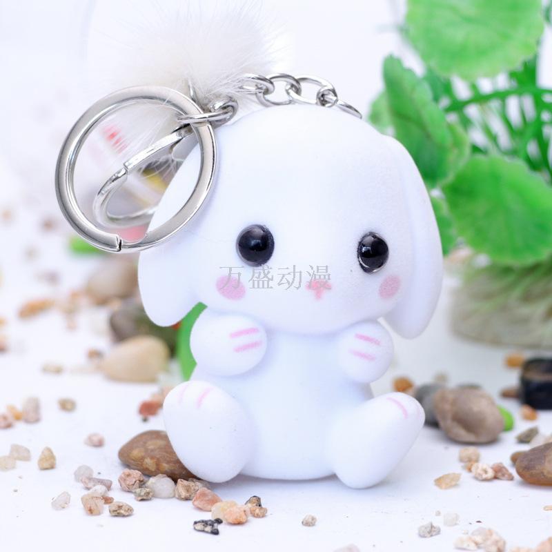 white long eared rabbit plush key chain