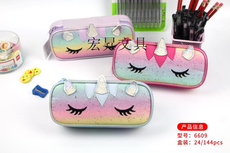 Korean eye pencil bag Double pencil bag box storage box or large capacity Cartoon Macro rise writing case