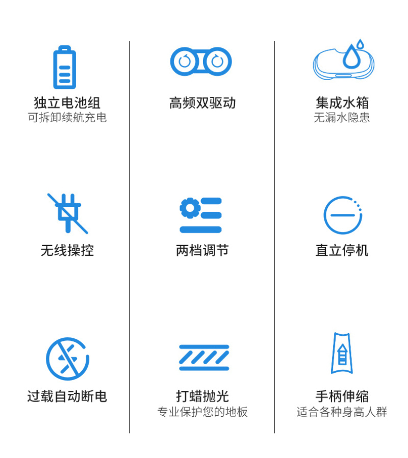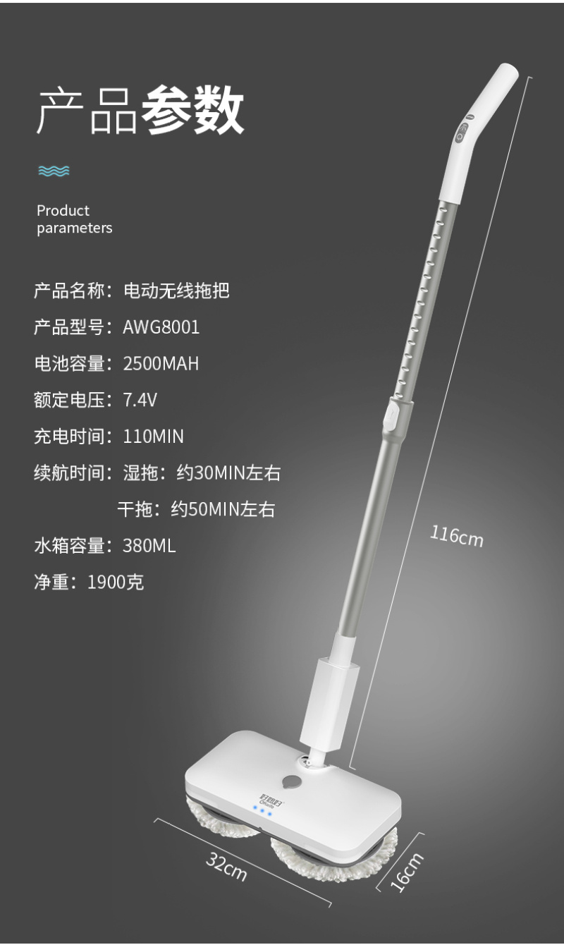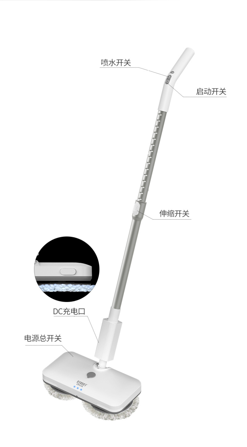 Good wife - Item No. 8001A - 6 pieces per piece. Gray and white wireless electric mop. Good wife wireless electric mop home smart lazy mopping and sweeping machine with spraying and water absorption, suitable for dry and wet use.