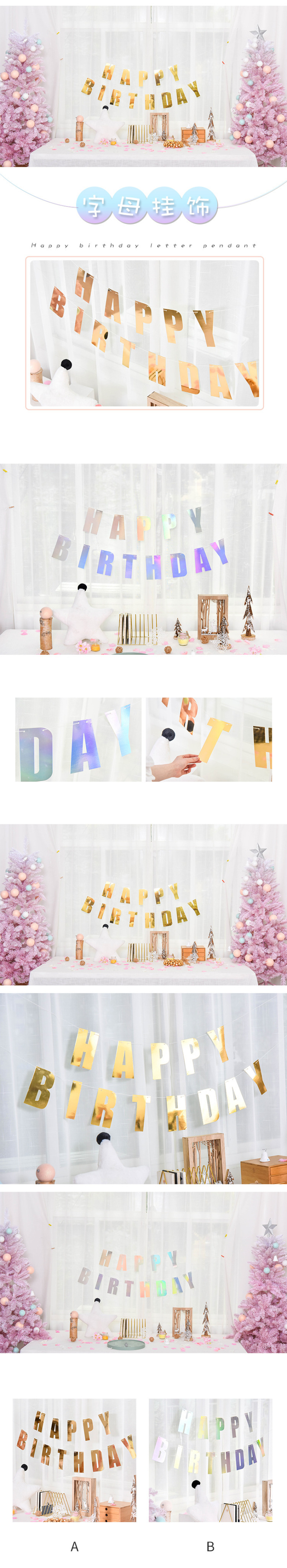 Holiday party birthday decorations decorate the background wall Nordic style banners pennant pennant balloons