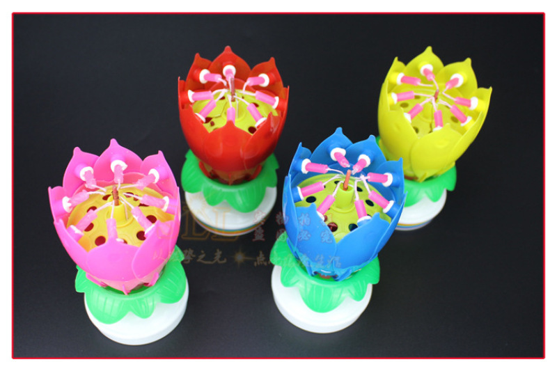 Holiday Party supplies Lotus Music Candle double Flowered Birthday cake Flat Flat Rotating electronic Lotus Candle