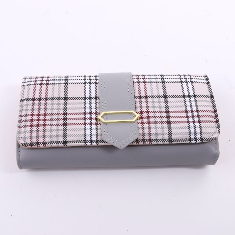factory hot sale classic plaid striped long wallet with buckle