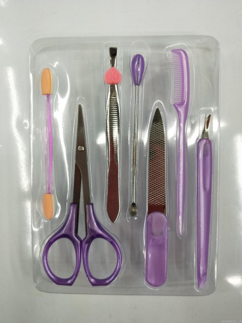 Products: double-Headed cotton, scissors, eyebrow clip, ear pick, nail file, small comb, peeling fork